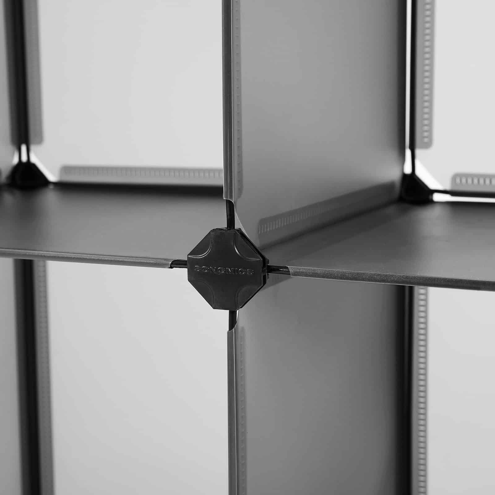 Ši bevaržčių lentynų sistema yra pritaikoma pagal jūsų poreikius. Galite ją surinkti ir išplėsti įvairiomis formomis, naudodami pridedamas atsargines jungtis, kad pritaikytumėte ją savo erdvei. Leiskite savo vaizduotei laisvai veikti ir atraskite daugiau galimybių su šia stilinga pilka batų lentyna!