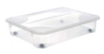 Vieta viskam ir viskam savo vietoje!Klasikinė daiktadėžė po drabužių spinta, patalyne ar antklode. Plokščias, 17,3 cm aukščio, puikiai telpa po lova arba spintos apačioje. Jie padės įvesti tvarką ir tvarką miegamajame, drabužinėje ar vaikų kambaryje. Taros naudojimas jūsų drabužių spinta yra puikus būdas laikyti batus, sezoninius drabužius ir aksesuarus. Dėl skaidrių sienelių matomas indo turinys. Jis gali būti atidaromas iš viršaus, leidžia lengvai pasiekti viduje laikomus daiktus. Viršutinis kraštas tarnauja kaip rankena. Galima sutaupyti daug vietos. aukštos kokybės apdirbimas labai didelė talpa 60L skaidrios spalvos uždaroma iš viršaus sandarus dangtis 4 ratukai leidžia lengvai slysti: 60L matmenys: 17,3 (aukštis) x 79,1 x 59 , 2 cm Medžiaga: polipropilenas
