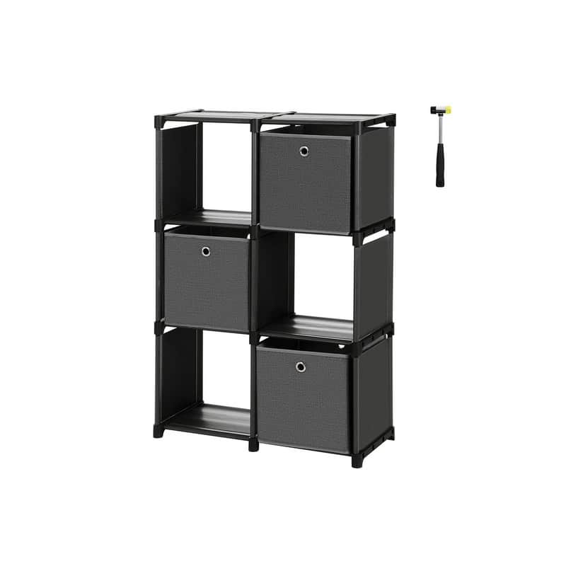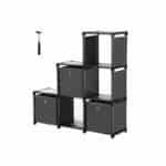 Plastikinė lentyna su 3 medžiaginiais kubeliais yra puikus sprendimas jūsų namų organizavimui. Ši juodos spalvos lentyna, kurios matmenys yra 105 x 30 x 105 cm, suteiks jums pakankamai vietos laikyti įvairius daiktus.