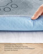 • Trečiasis sluoksnis: Vandeniui atsparus TPU (termoplastinis poliuretanas) – apsaugo nuo skysčių pratekėjimo, užtikrinant švarą ir higieną.