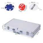 Šiame pilnai įrengtame pokerio dėkle rasite viską, ko reikia įdomiam pokerio žaidimui: 300 pokerio žetonų su plačiu spalvų pasirinkimu, 5 pokerio kauliukus, 1 dalintojo žetoną ir 2 kortų kaladės. Žaiskite Texas Hold’em, Blackjack, ruletę ir daugybę kitų įdomių variantų. Tinkamas aliuminio dėklas su skyreliais visiems priedams turi du užraktus ir rankenėlę, todėl pokerio rinkinį lengviau transportuoti.