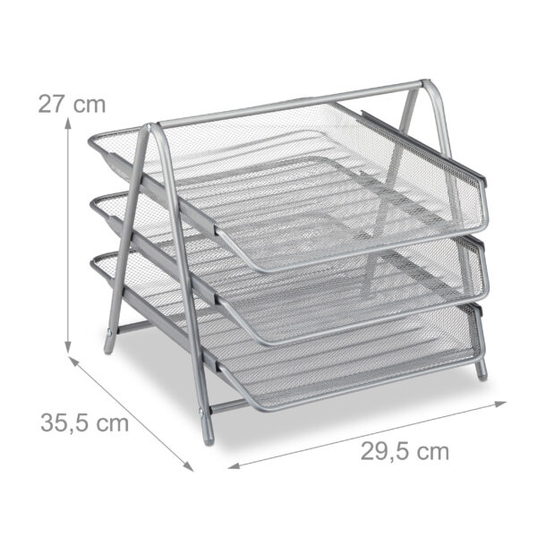 - Efektyvi organizacija: Dėklas turi tris lygius, kurie leidžia saugoti dokumentus, laiškus ar sąskaitas vienas ant kito, taip sutaupant vietos ant stalo.