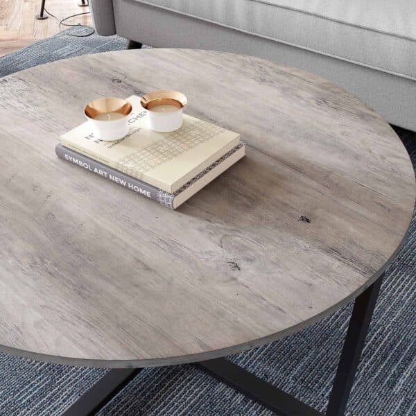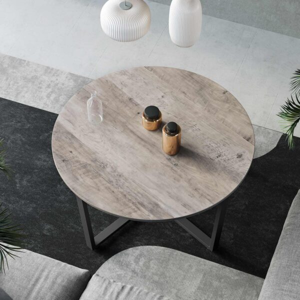 Pramoninio dizaino apvalus kavos staliukas, pilka/juoda, yra puikus pasirinkimas jūsų svetainei. Šis staliukas ne tik stilingas, bet ir funkcionalus, todėl puikiai tiks bet kokiam interjerui.