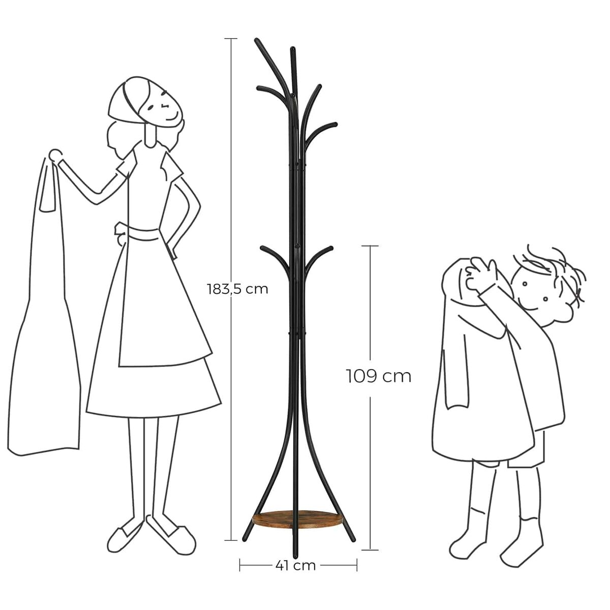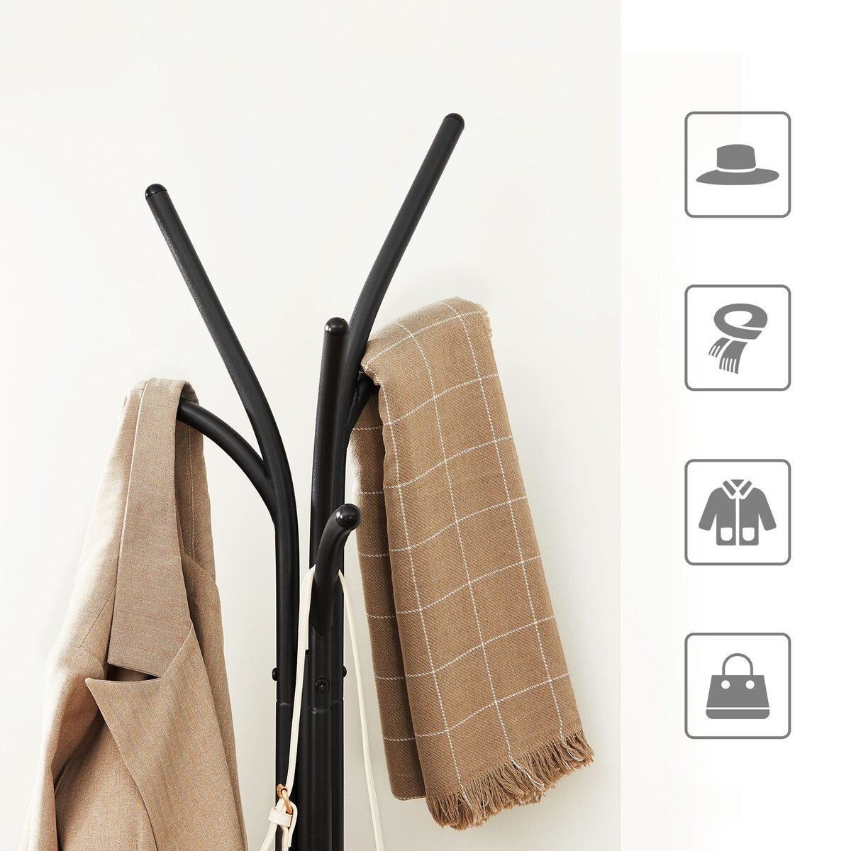 Ant šio stovo pakabinkite tolygiai paskirstytus daiktus, kad jis neapvirstų.