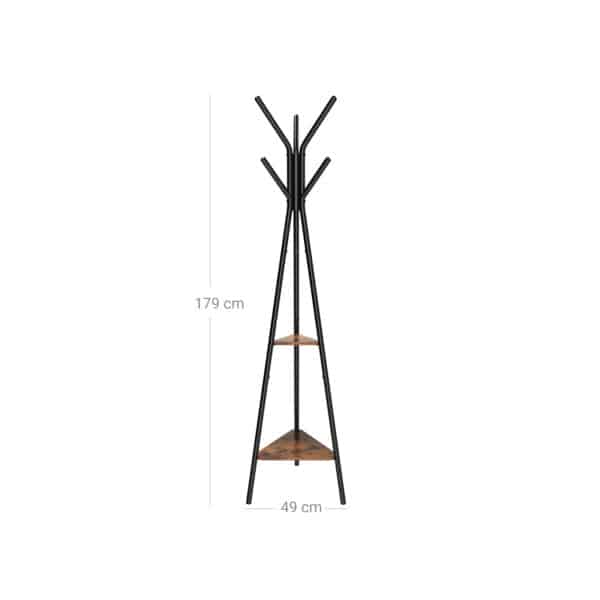 Ryškiausias akcentas kambario kampe – dėl juodo plieno ir vintažinių lentynų derinio paprasta spinta tampa jūsų namų akcentu. Be patrauklios išvaizdos, spinta taip pat yra labai praktiška, todėl netrukus galėsite tvarkingai pakabinti visus kasdienius daiktus. Ant 6 kabliukų ir 2 papildomų lentynų yra vietos jūsų striukėms, krepšiams ir kitiems daiktams. Ši spinta sukuria aiškumą jūsų prieškambaryje, kad jaukumo jausmas kiltų vos įėjus į namus.