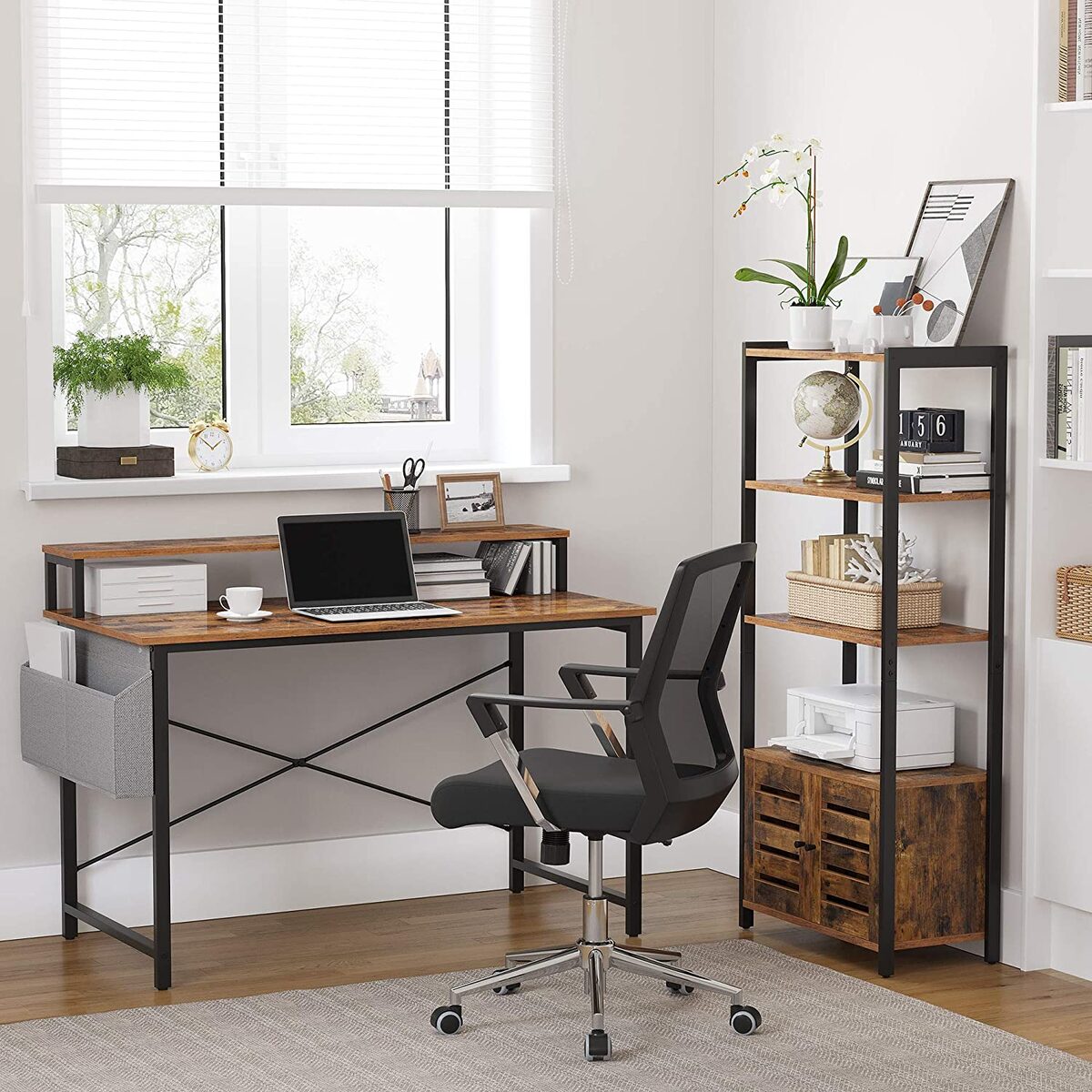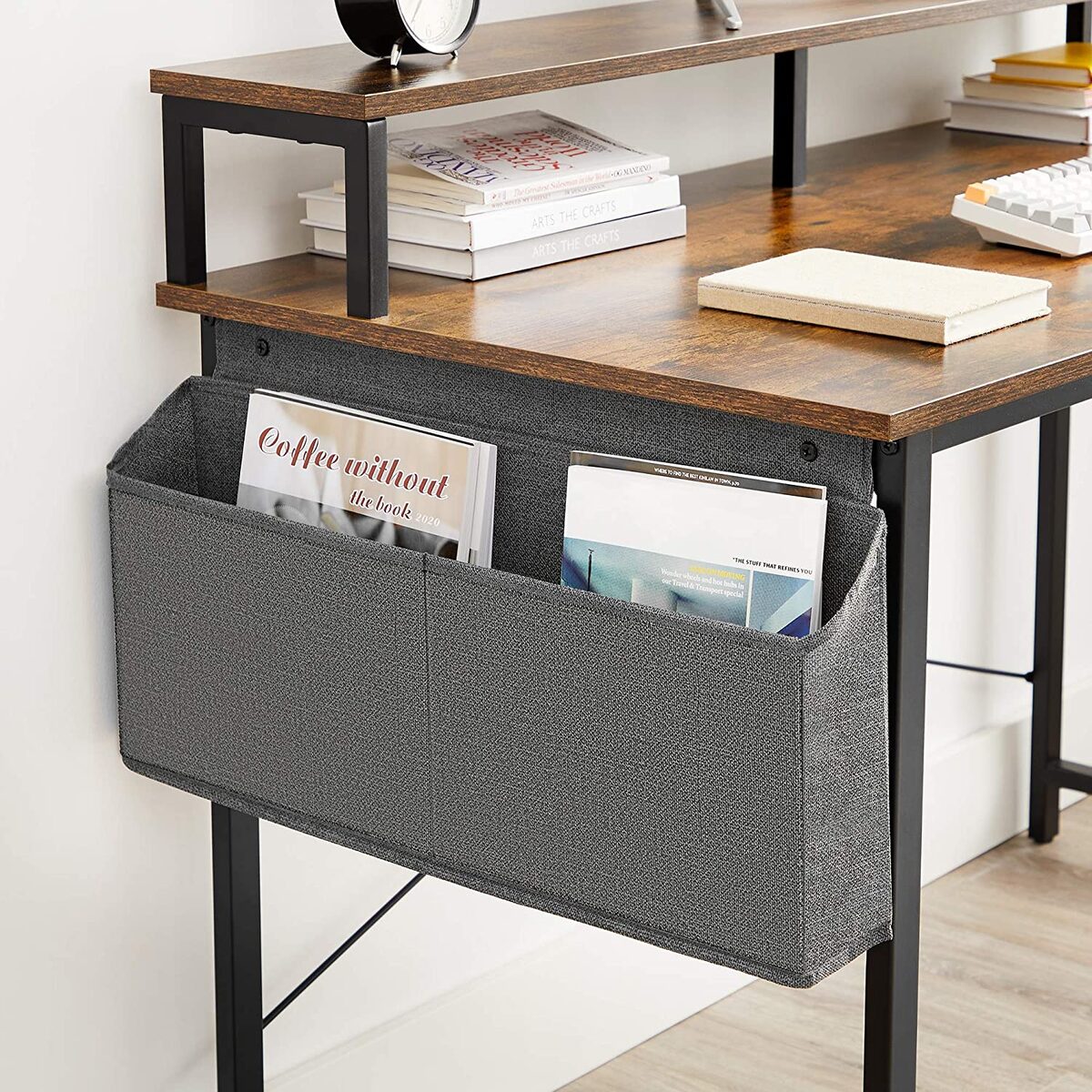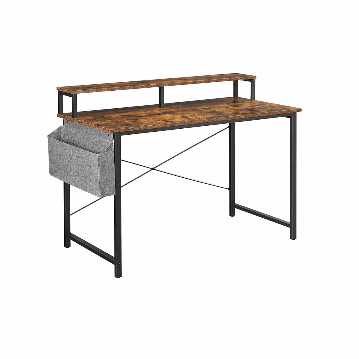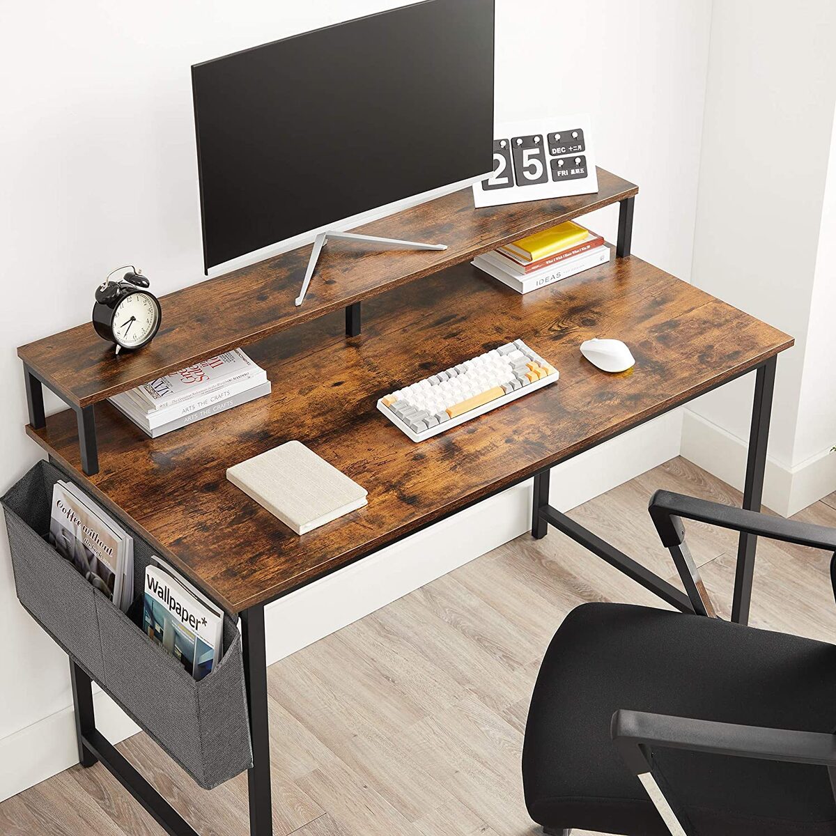 Pramoninio stiliaus kompiuterio stalas su monitoriaus stovu su krepšiu