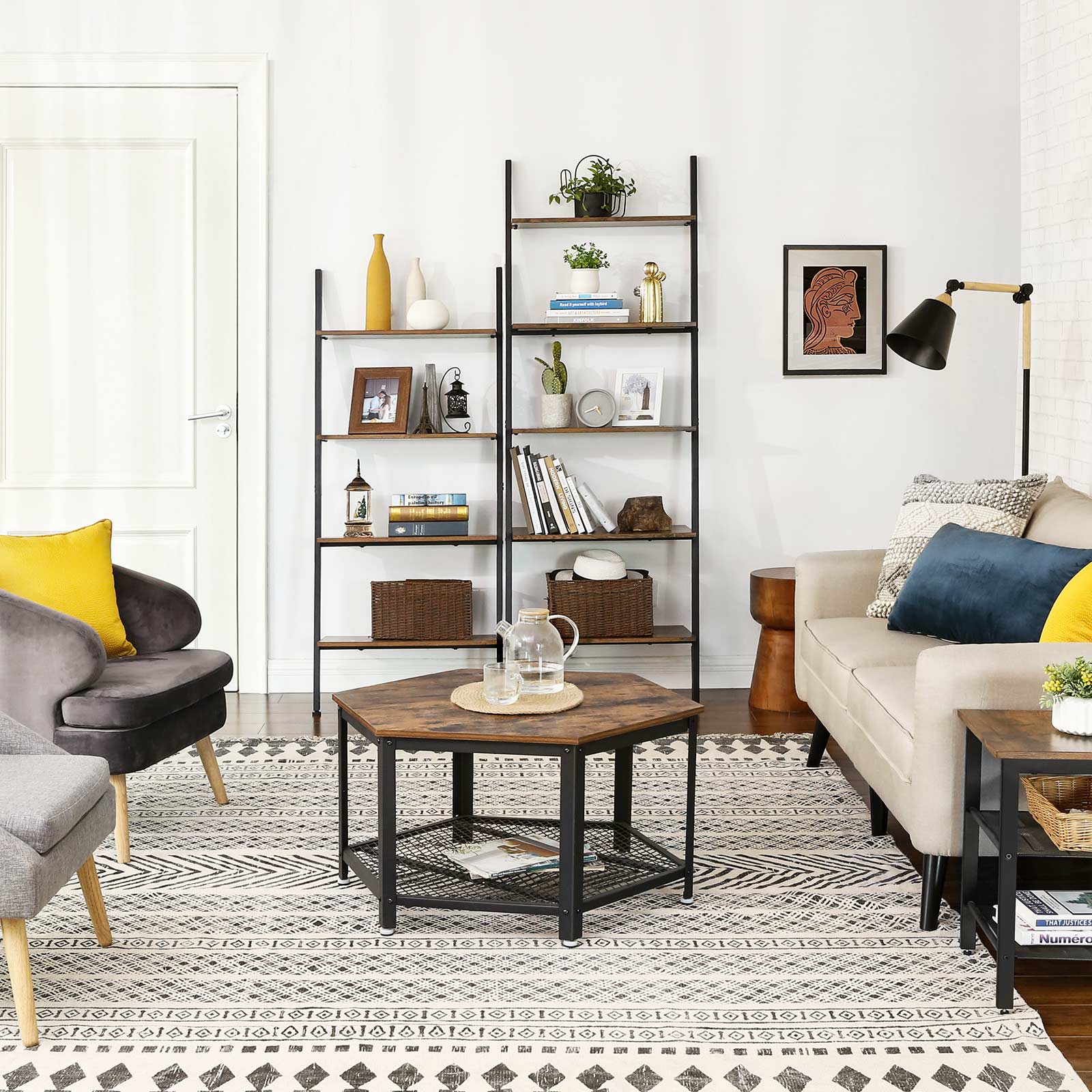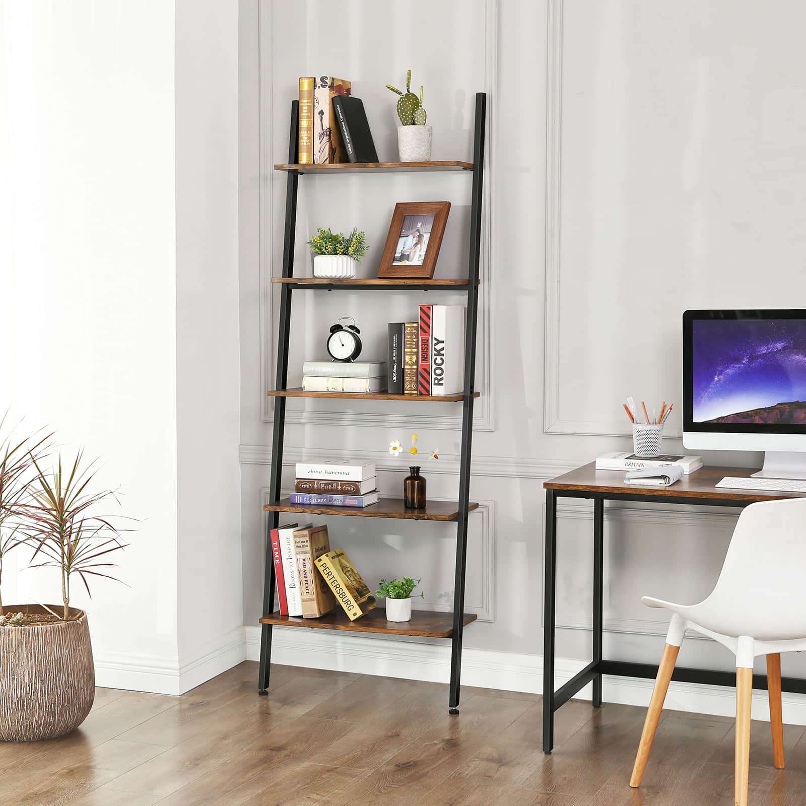 Pramoninio stiliaus kopėčių stelažas su 5 lentynomis