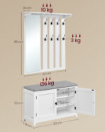 Šis prieškambario komplektas, debesų baltos spalvos, yra puikus pasirinkimas jūsų namų interjerui. Jis suteikia elegancijos ir funkcionalumo, padedant tvarkingai laikyti drabužius ir batus.