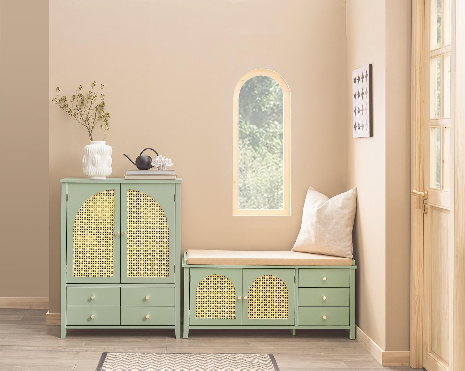 Suolo lentynos yra reguliuojamos, todėl galite pritaikyti skyrius pagal savo individualius laikymo poreikius. Tai leidžia efektyviai išnaudoti erdvę ir užtikrinti, kad visi jūsų daiktai būtų lengvai pasiekiami.