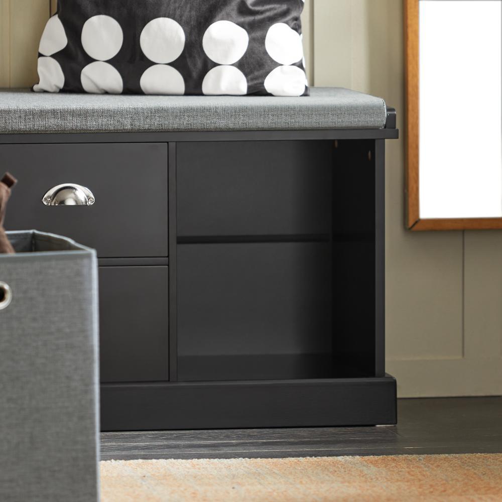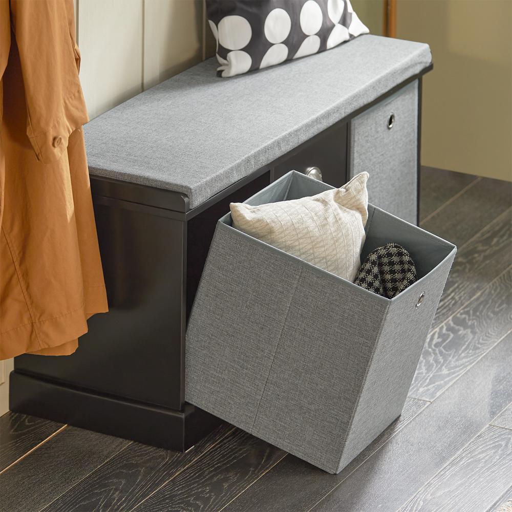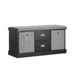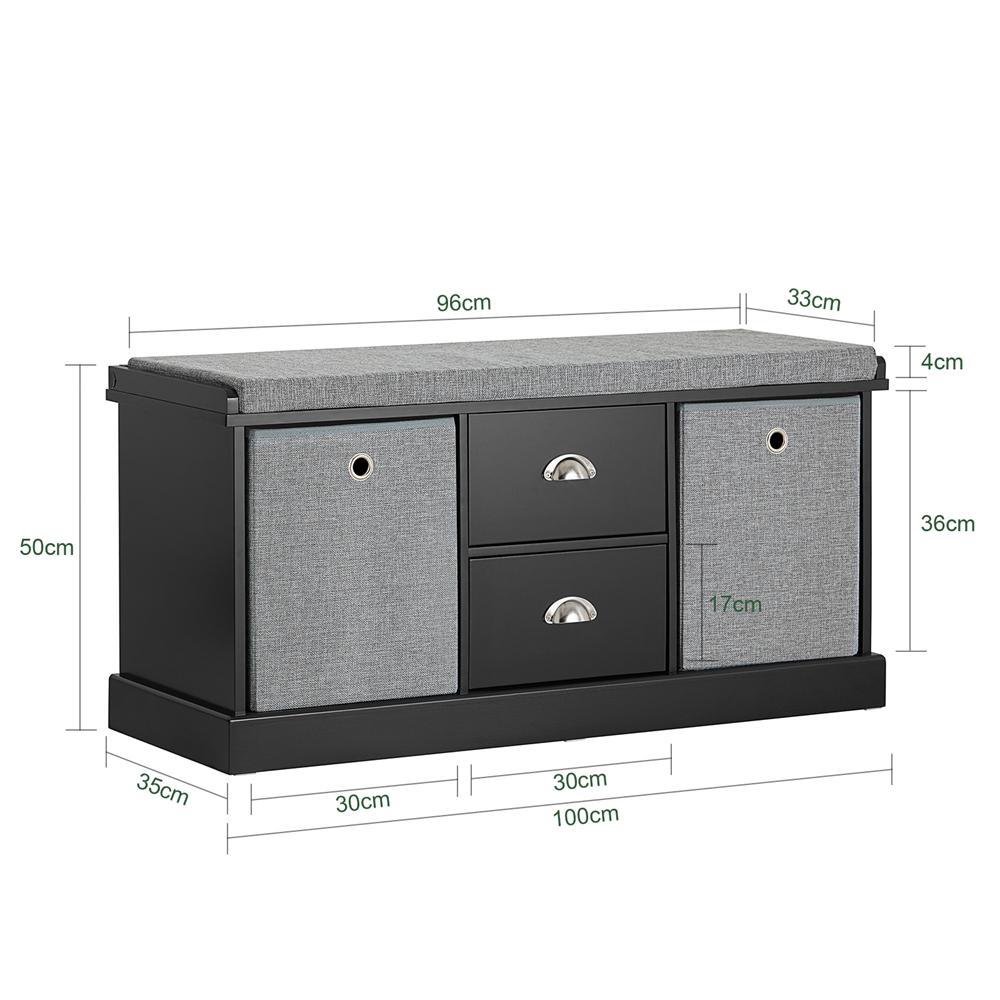 Prieškambario suolas 100x35x50 cm, juodos/pilkos spalvos, yra ne tik stilingas, bet ir praktiškas baldas, suteikiantis jūsų namams šilumos ir jaukumo. Šis suolas puikiai tinka tiek svetainėje, tiek prieškambaryje ar miegamajame, suteikdamas papildomą vietą daiktų laikymui, padėjimui ar darbui.