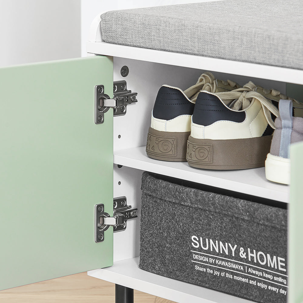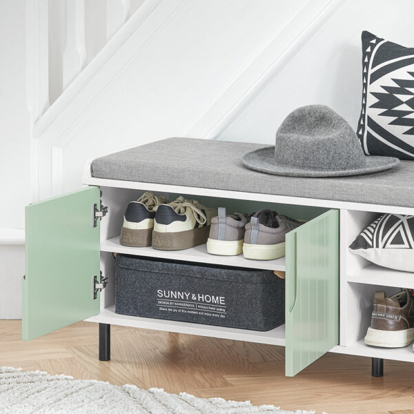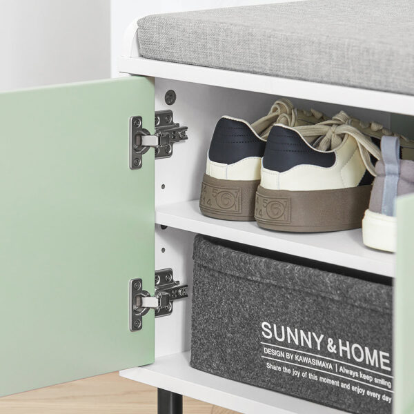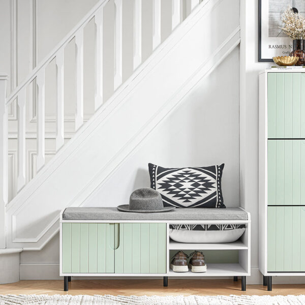 Suolas turi dviejų lygių batų laikymo sistemą, kuri leidžia efektyviai organizuoti avalynę ir suteikia papildomą saugojimo vietą po sėdyne, kad išvengtumėte netvarkos. Tai puikus pasirinkimas jūsų prieškambariui, foje, svetainei, miegamajam, vonios kambariui, terasai ar virtuvei.