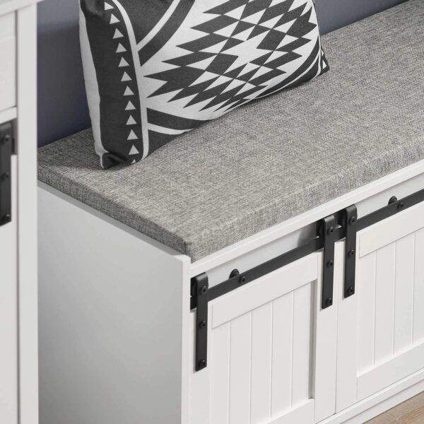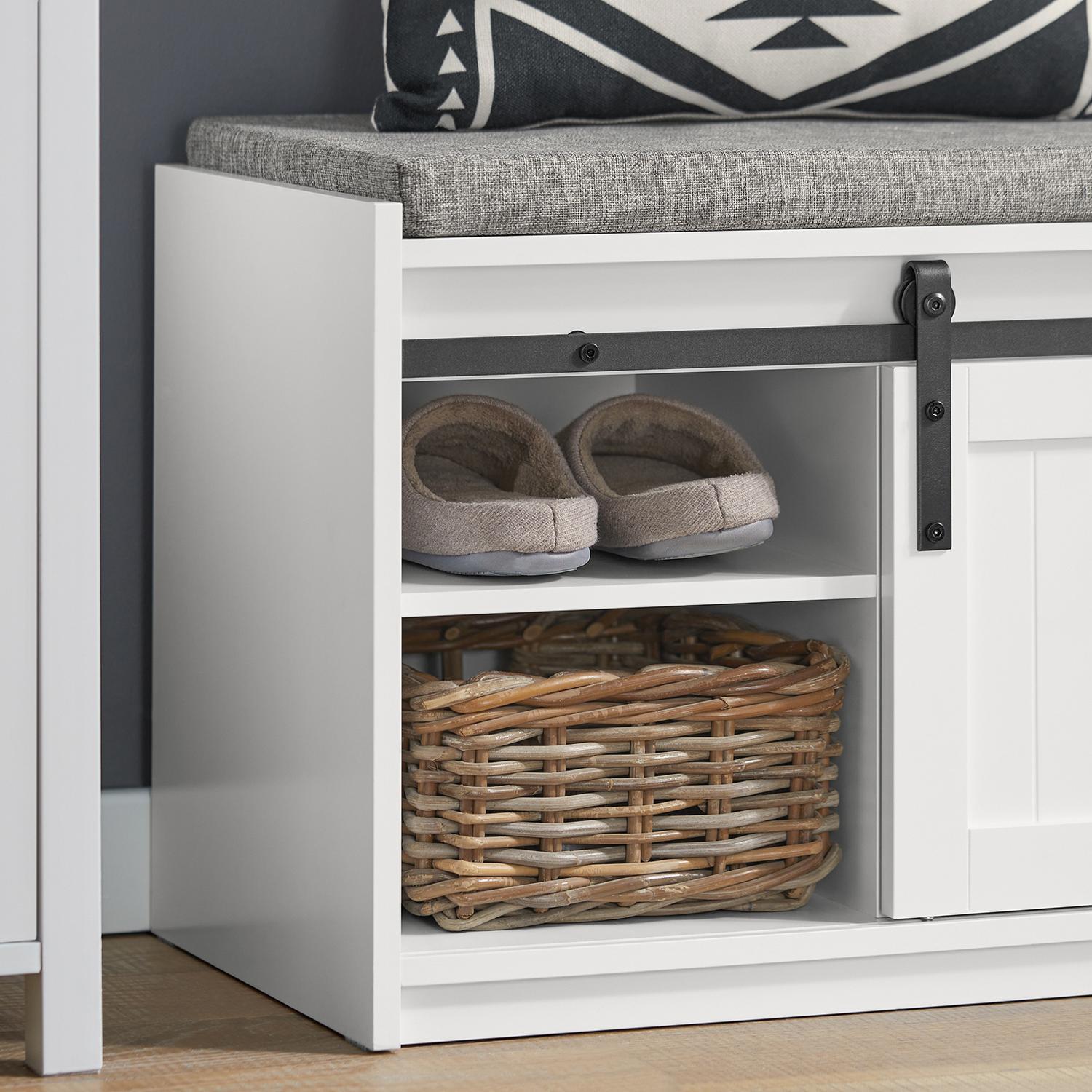 Prieškambario suolas 120x35x45 cm yra praktiškas ir stilingas baldas, kuris puikiai tinka jūsų namų interjerui. Šis suolas su erdvia lentyna padės tvarkingai laikyti įvairius daiktus, o patogi stumdomoji duris leis jums lengvai keisti, kurią pusę norite atidengti.