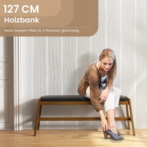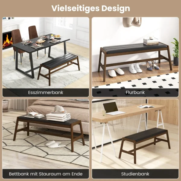 Prieškambario suolas 127x48x47,5 cm tamsiai rudos ir juodos spalvos yra praktiškas ir patogus pasirinkimas įvairioms erdvėms. Šis medžio masyvo suolas puikiai tinka tiek prieškambariui, tiek valgomojo zonai ar miegamojo zonai prie lovos. Dėl natūralios gumos medienos ir PVC odos apmušalų jis užtikrina stabilumą ir funkcionalumą kasdienėje naudojimo.