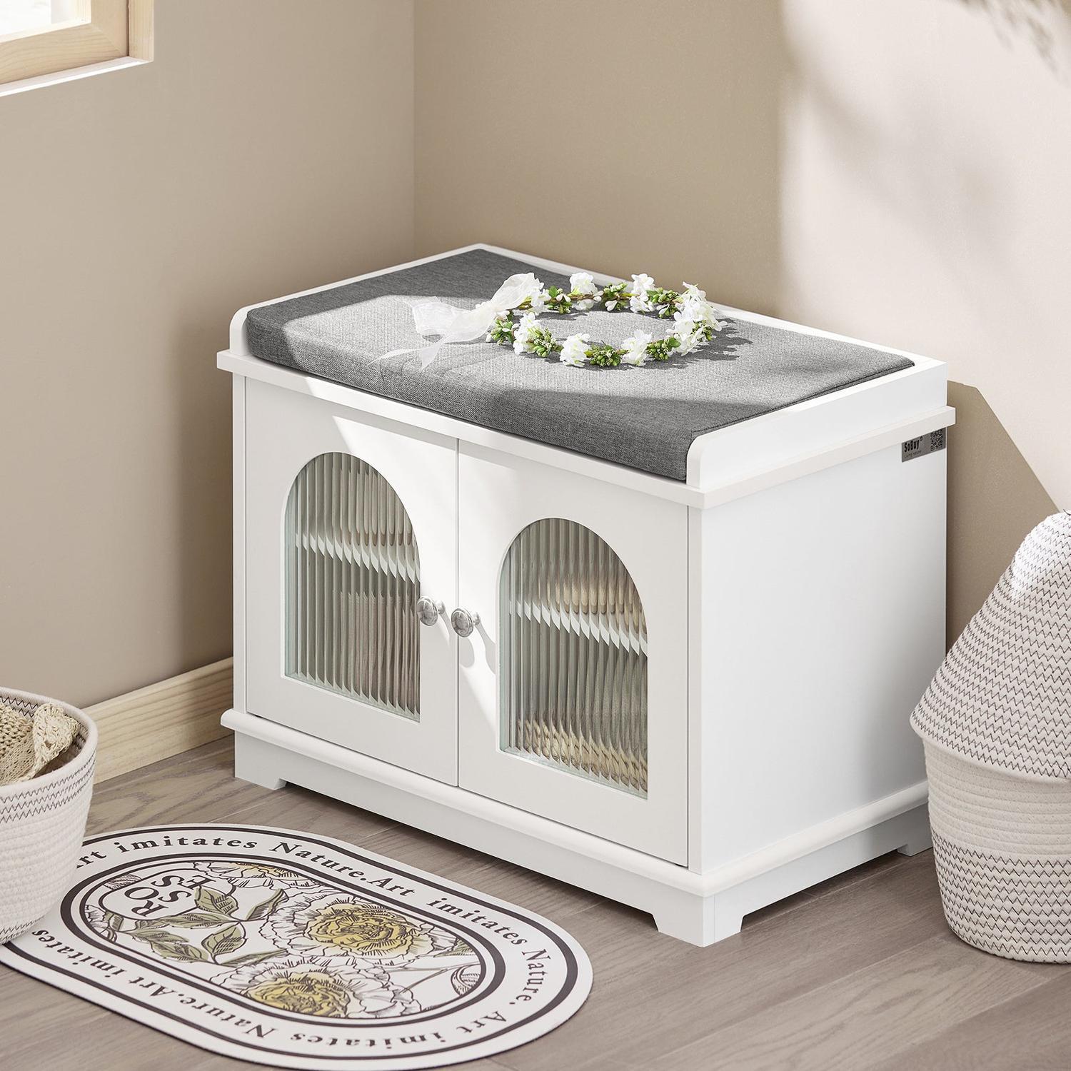 Prieškambario suolas 60x35x45cm., baltos/pilkos spalvos FSR121-W