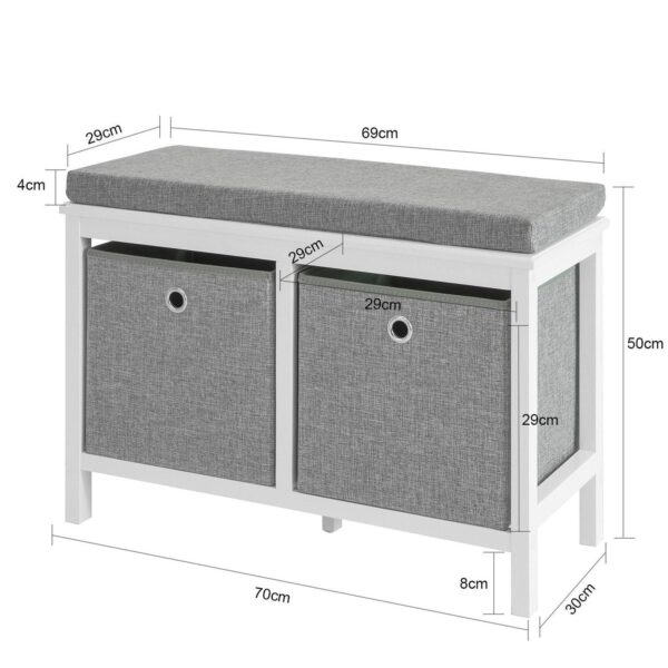 Prieškambario suolas 70x30x50cm., baltos/pilkos spalvos FSR81-HG