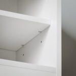 Suolas turi reguliuojamas lentynas, kurios suteikia galimybę individualiai pritaikyti laikymo erdvę pagal jūsų poreikius. Tai leidžia lengvai organizuoti ir eksponuoti savo daiktus.