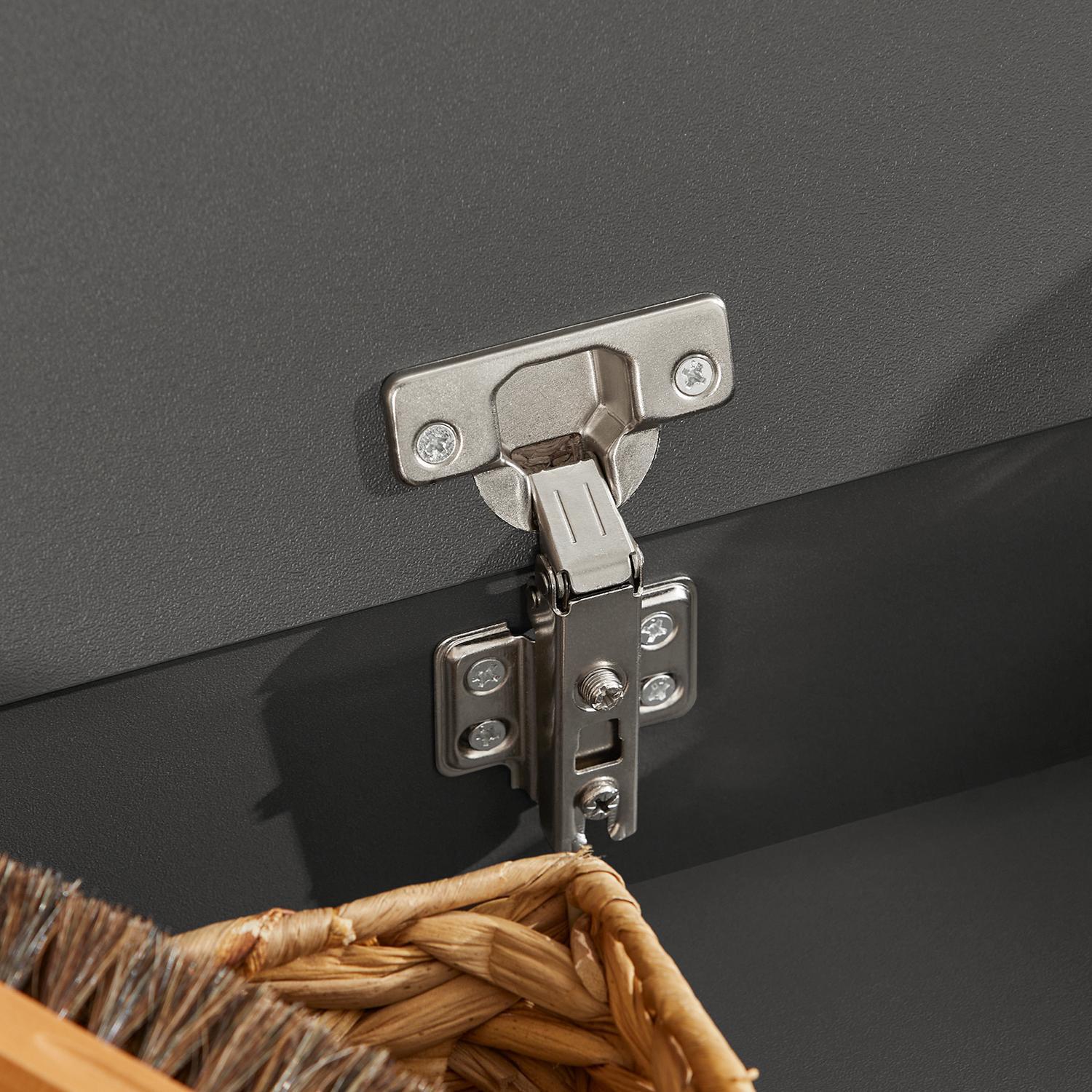 Prieškambario suolas 80x31x48 cm, tamsiai pilkos/pilkos spalvos, yra puikus sprendimas jūsų batų laikymui ir organizavimui. Šis suolas ne tik suteikia patogią vietą sėdėti, bet ir padeda išlaikyti jūsų batus tvarkingai sudėtus.
