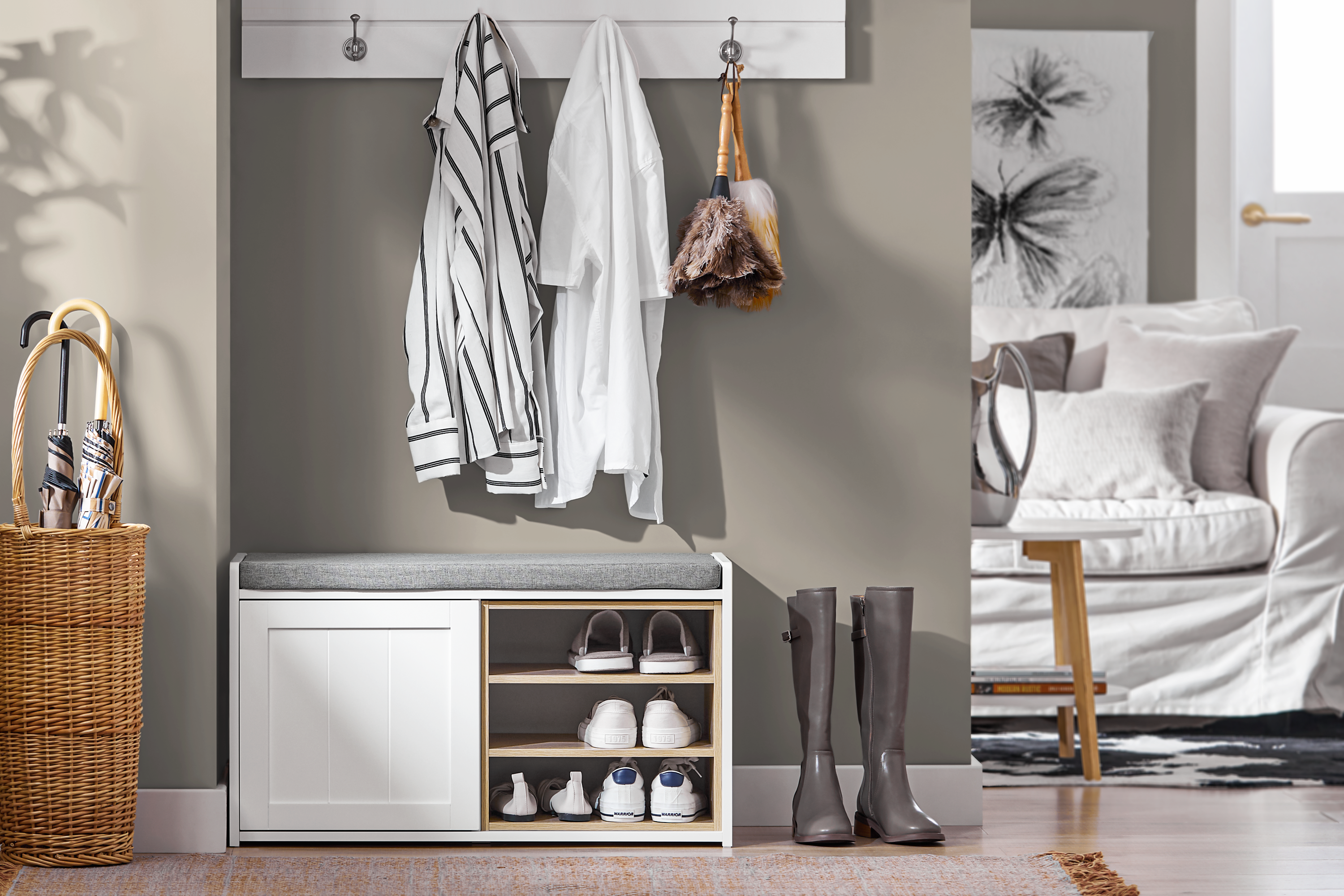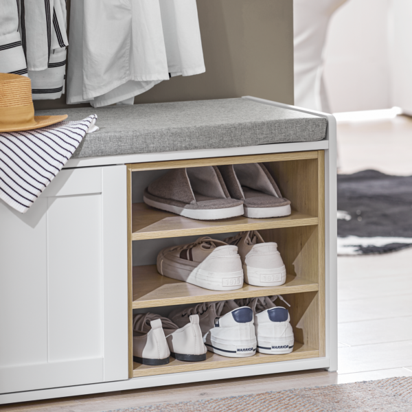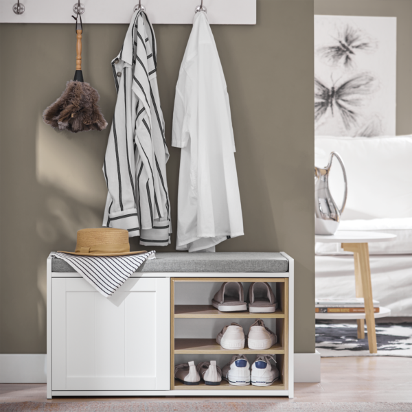 Šiuolaikiškas batų suolas lengvai pritaikomas bet kurioje jūsų namų erdvėje. Tai vienas geriausių baldų, norint pakeisti interjero stilių ir patogiai laikyti drabužius bei batus.