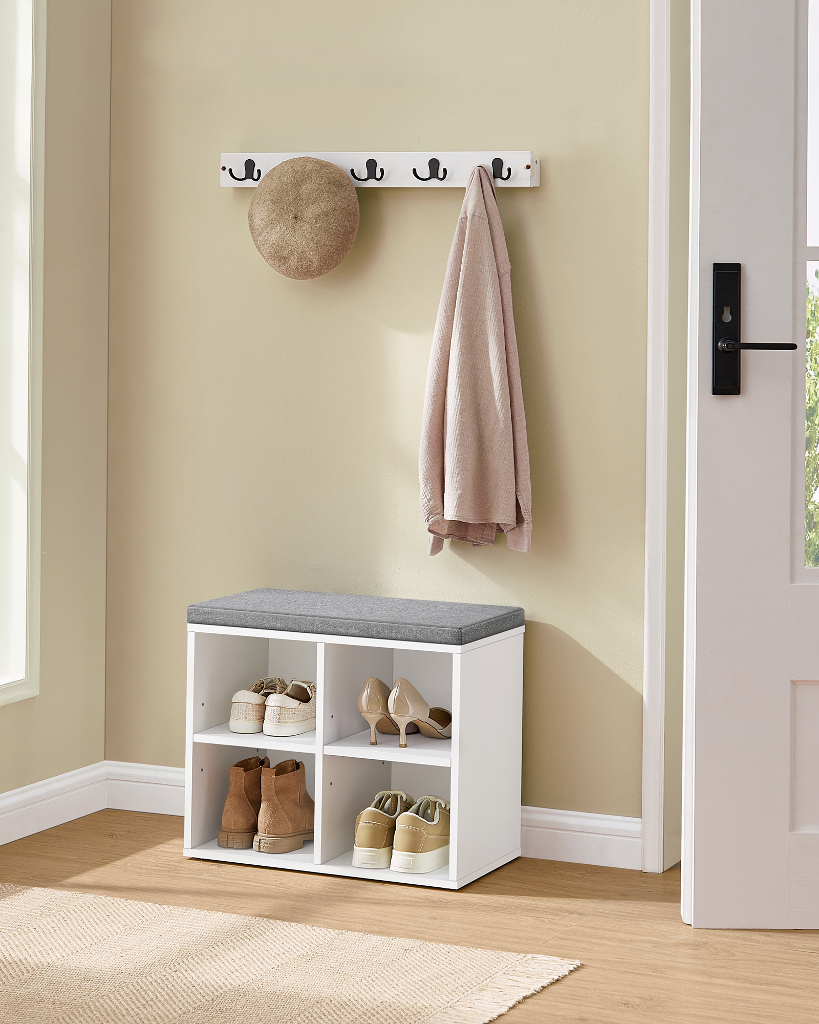 Šis prieškambario suoliukas yra puikus pasirinkimas jūsų namų interjerui. Jo debesėlio balta ir balandžio pilka spalva suteikia šiuolaikišką ir elegantišką išvaizdą.