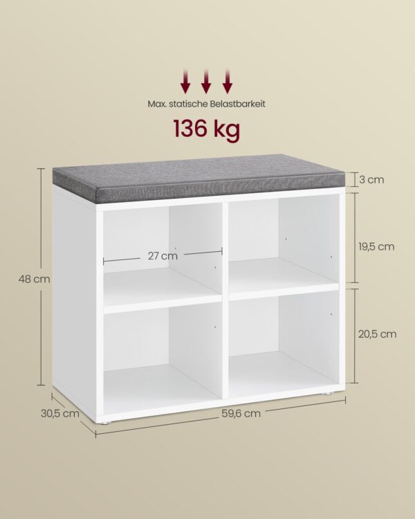 Prieškambario suoliukas 30,5×59,6x48cm., baltos/pilkos spalvos