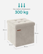 Maksimali statinė apkrova yra 300 kg, todėl jis yra itin patvarus. Be to, suoliukas turi 43 litrų talpą, kuri leidžia patogiai laikyti įvairius daiktus.