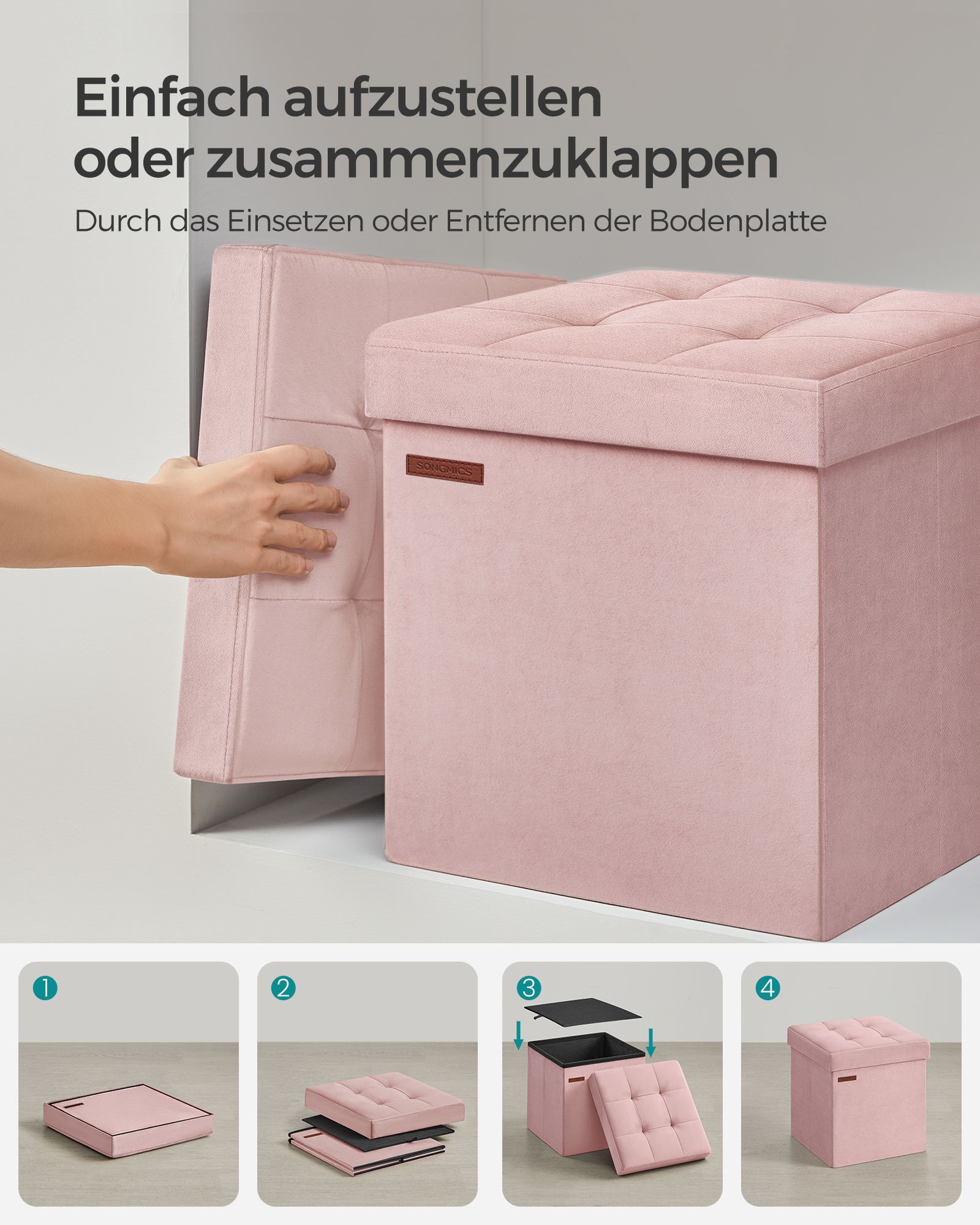 Pagamintas iš aukštos kokybės MDF (vidutinio tankio medienos plaušų plokštės), aksomo ir putplasčio, šis suoliukas yra tvirtas ir ilgaamžis. Jo svoris siekia 2,5 kg, tačiau gali atlaikyti net iki 300 kg statinės apkrovos.