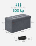Maksimali statinė apkrova yra 300 kg, todėl jis yra itin patvarus. Be to, suoliukas turi 89 litrų talpą, kuri leidžia patogiai laikyti įvairius daiktus.