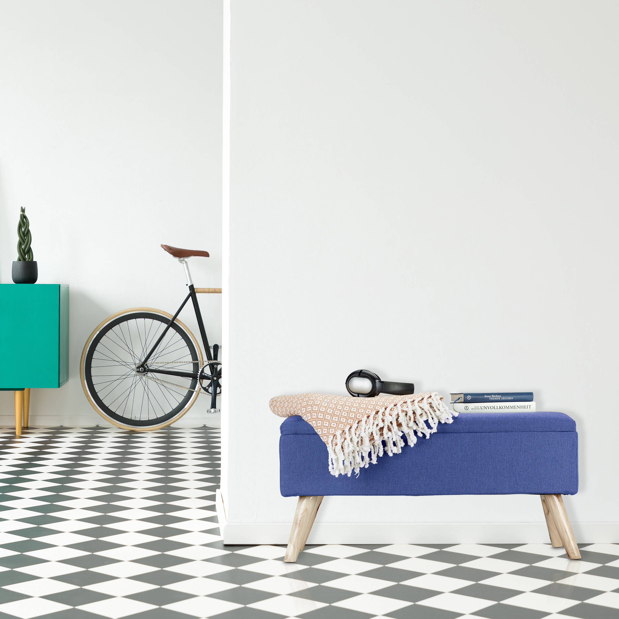 Prieškambario suoliukas 39,5×79,5×39,5 cm – Šviesiai Rudos/Mėlynos Spalvos