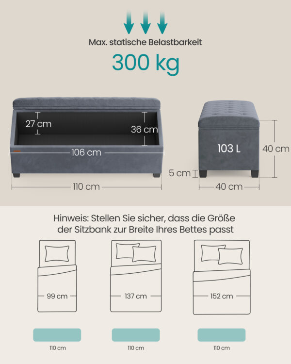 Suoliukas taip pat pasižymi 103 litrų talpa, kuri leidžia patogiai laikyti įvairius daiktus.