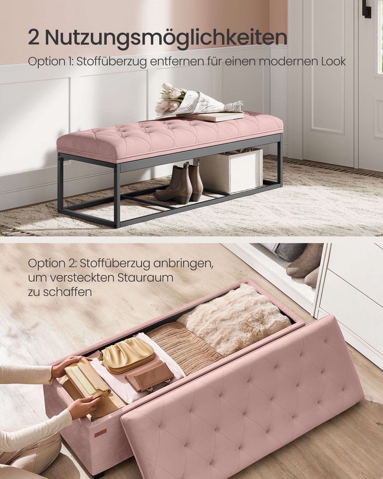 Šis prieškambario suoliukas yra puikus pasirinkimas jūsų namų interjerui. Jo pastelinė rožinė spalva suteikia švelnumo ir elegancijos, puikiai derančios prie įvairių interjero stilių.