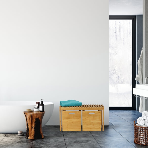 - Praktiškumas: Dvi erdvios daiktadėžės leidžia tvarkingai laikyti batus, rankšluosčius, žaislus, skalbinius ir kitus daiktus.