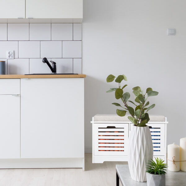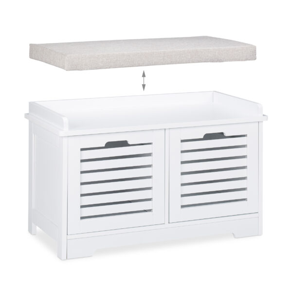 - Paslėpta saugykla: Po paminkštinta sėdyne rasite du paprastus krepšelius, idealiai tinkančius batams, šalikams ir kitiems smulkiems daiktams laikyti.