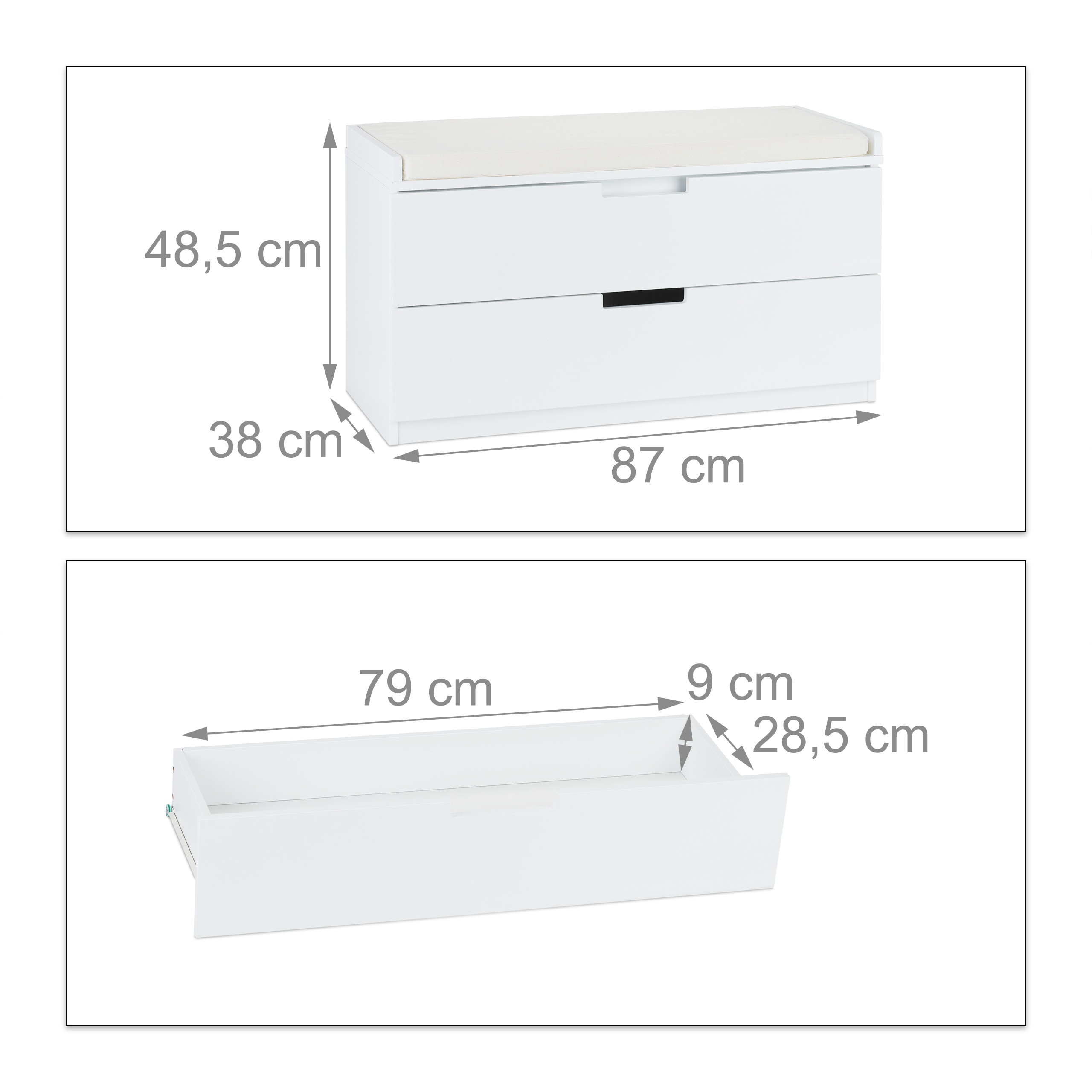 Šis prieškambario suoliukas ne tik suteikia patogią sėdimą vietą, bet ir pasižymi dviem erdviais stalčiais, kurie yra idealūs įvairių daiktų laikymui: