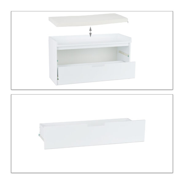 Įneškite tvarkos ir stiliaus į savo namus su šiuo elegantišku prieškambario suoliuku. Jo klasikinė balta spalva ir funkcionalus dizainas puikiai dera bet kuriame interjere, suteikdami ne tik estetinį malonumą, bet ir praktišką sprendimą daiktų laikymui.