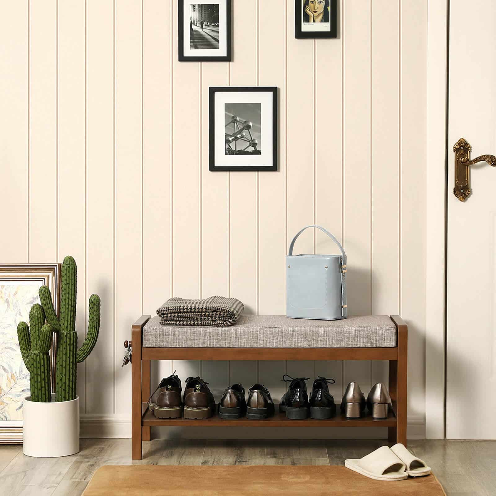 Ilgam tarnavimo laikui pagamintas iš medžio masyvo, šis batų suoliukas yra tvirtas ir patvarus. Jis gali atlaikyti iki 130 kg svorį. Įrenkite savo prieškambarį šiuo suoliuku, kad galėtumėte patogiai sėdėti apsiavę batus arba laukti partnerio, kuris ruošiasi išeiti.