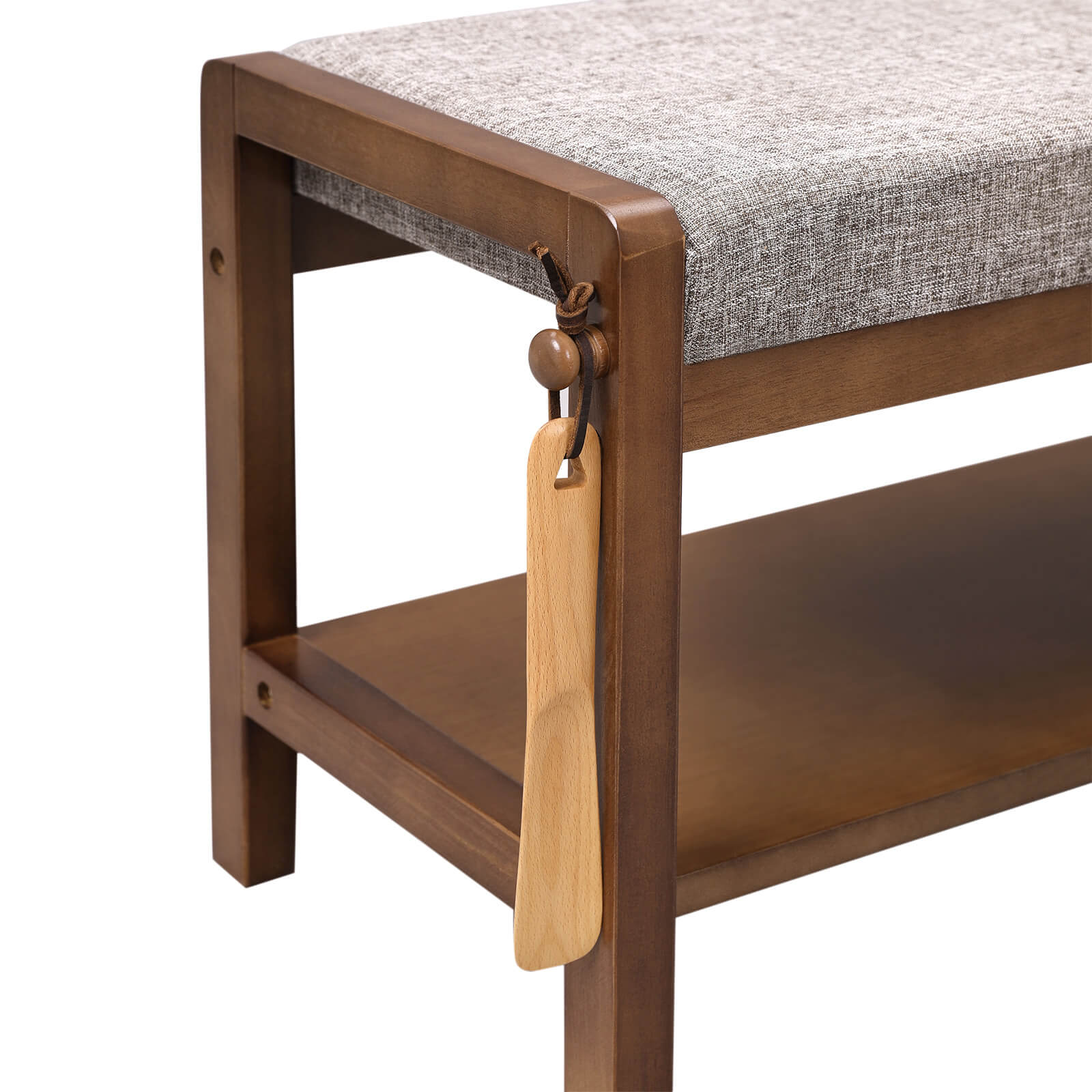Dėmesys detalėms: 4 neslystančios pėdų pagalvėlės apsaugo grindis nuo įbrėžimų. Šis suoliukas taip pat turi praktišką kabliuką, ant kurio galite pakabinti savo batų segtuką.