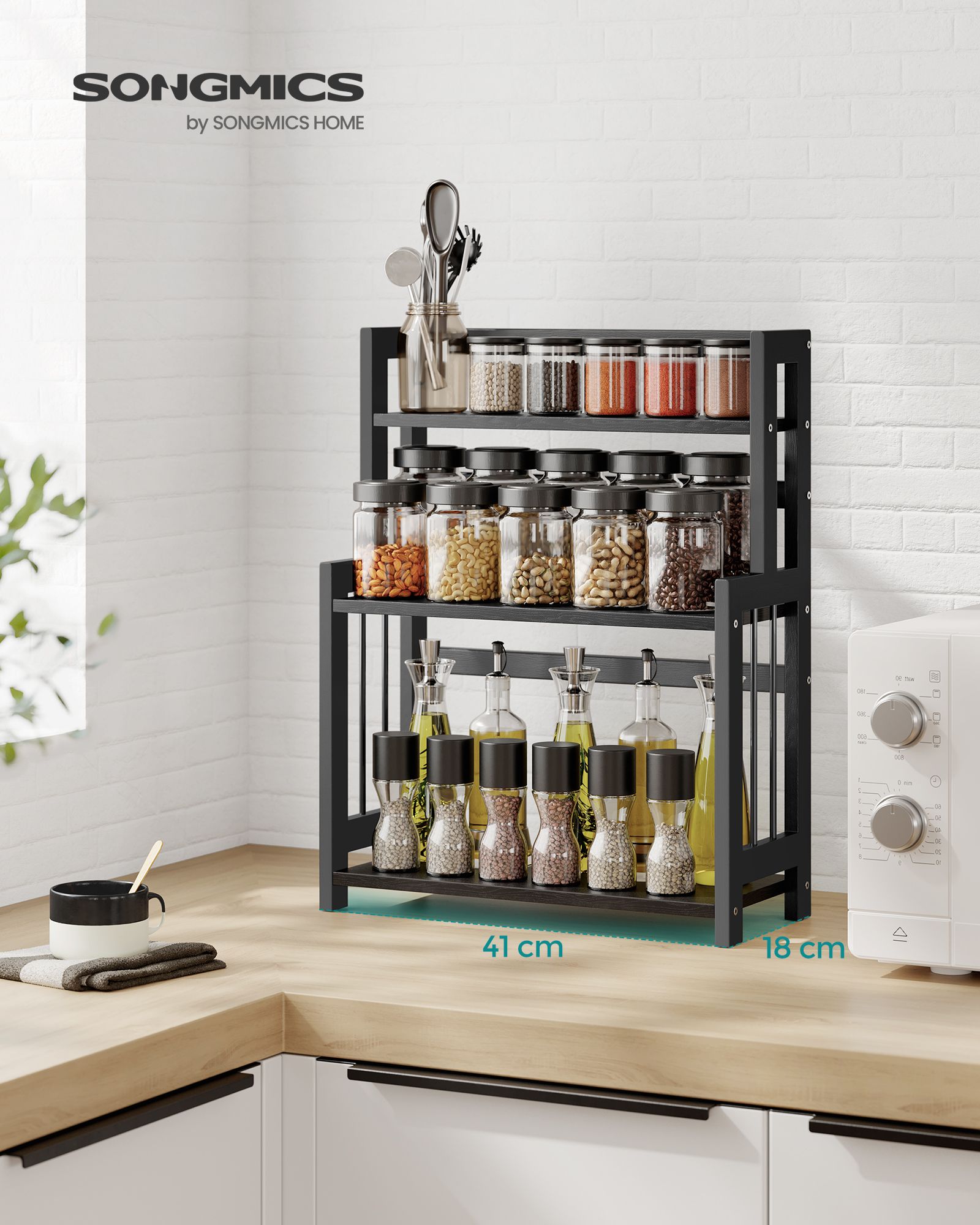 Ši prieskonių lentyna ne tik suteiks jūsų virtuvei modernumo, bet ir padės išlaikyti tvarką. Pagaminta iš tvirtos MDF plokštės ir natūralaus bambuko, ji yra patvari ir ilgaamžė. Juodmedžio juoda spalva suteikia elegancijos ir puikiai dera prie įvairių interjero stilių.