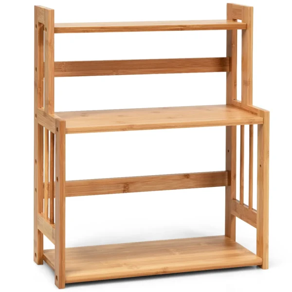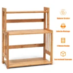 Prieskonių stovas 41,5x18x50 cm, šviesiai rudos spalvos, sukurtas efektyviam daiktų organizavimui virtuvėje, vonioje ar kitose namų erdvėse. Šis 3 pakopų bambuko stovas užtikrina patogų prieskonių, kosmetikos ar kitų smulkių daiktų laikymą bei tvarką.