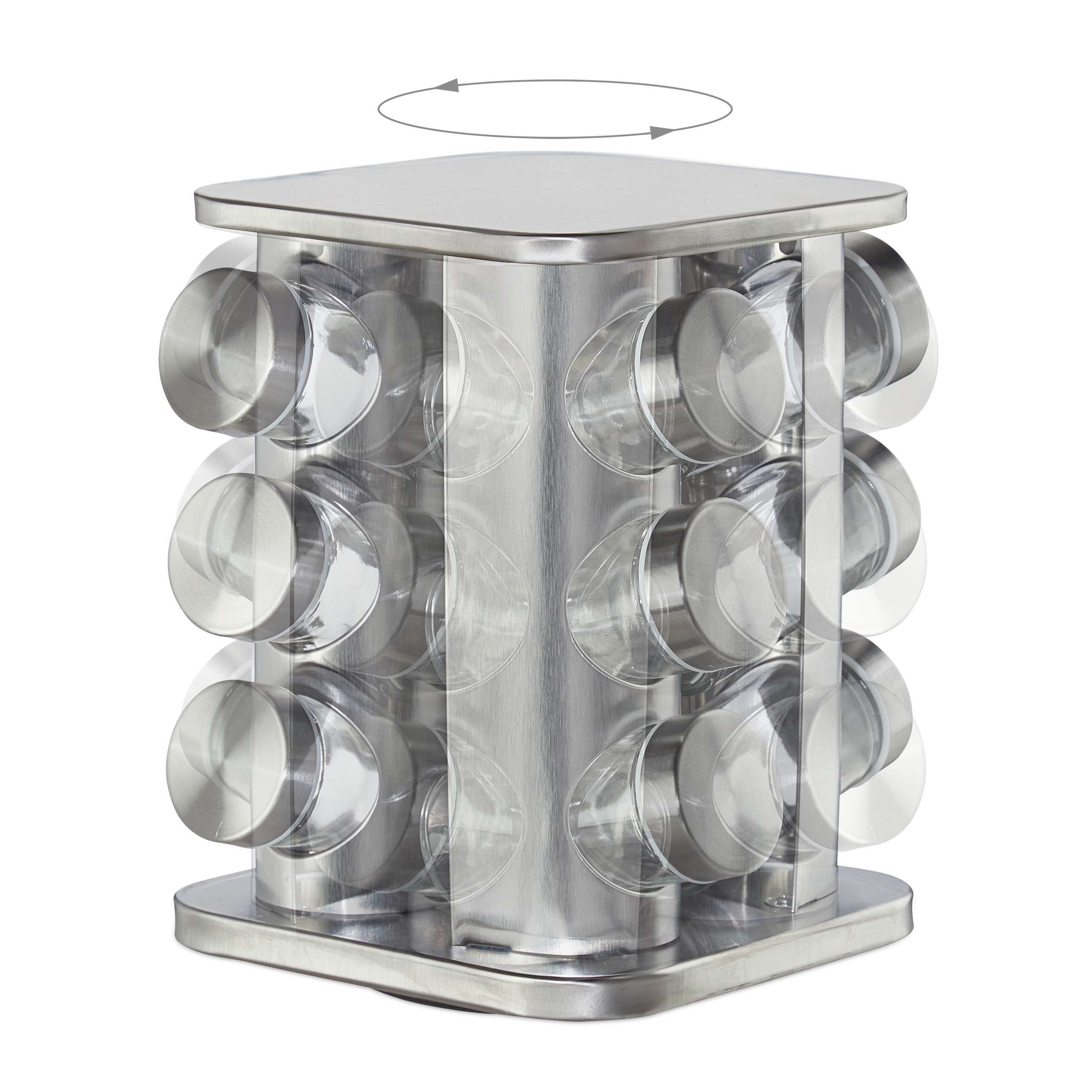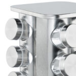 Prieskonių stovas su 12 skaidrių stiklinių 22x16x16cm, sidabrinės spalvos