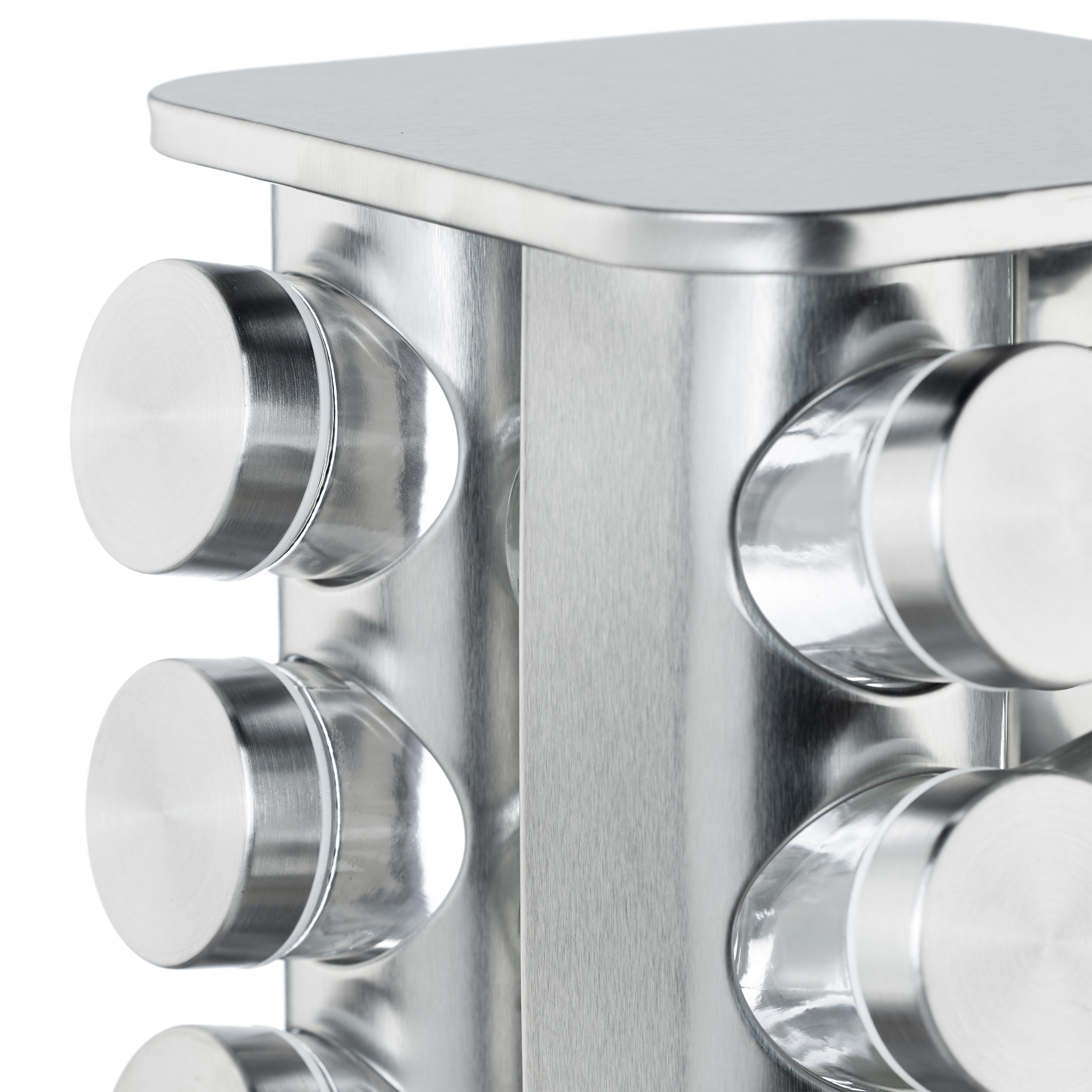 Įneškite elegancijos ir funkcionalumo į savo virtuvę su šiuo prieskonių stovu, pagamintu iš matinio nerūdijančio plieno. Šis stilingas ir praktiškas prieskonių stovas ne tik papuoš jūsų virtuvės interjerą, bet ir taps nepakeičiamu pagalbininku ruošiant gardžius patiekalus.