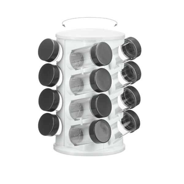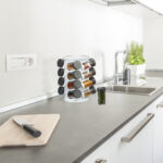 Įneškite tvarkos ir stiliaus į savo virtuvę su šiuo elegantišku prieskonių stovu. Šis besisukantis prieskonių laikiklis ne tik padės jums patogiai laikyti visus mėgstamus prieskonius ir žoleles, bet ir taps puikiu akcentu jūsų virtuvės interjere.
