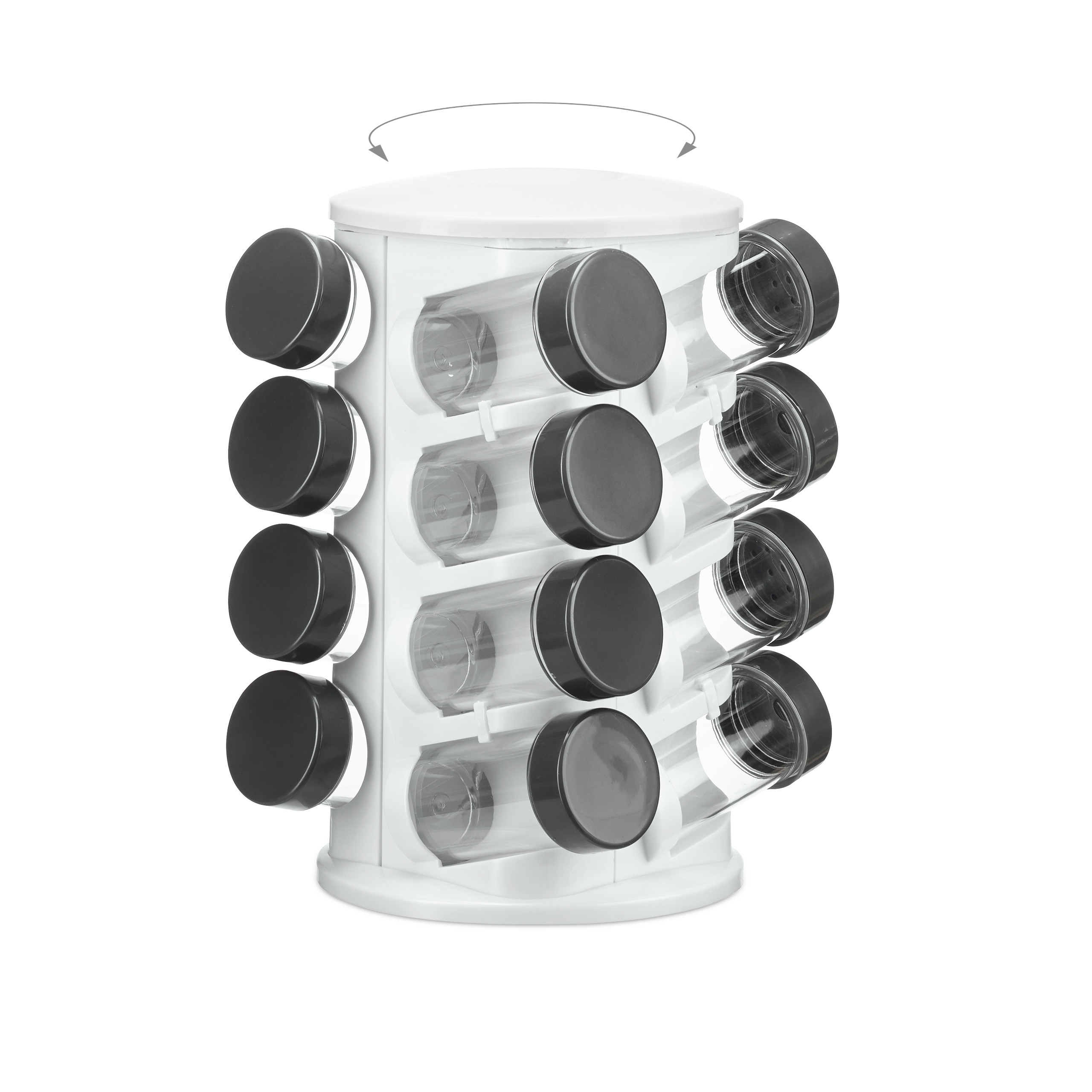 - Talpa: 16 skaidrių stiklinių indelių, leidžiančių lengvai matyti prieskonių kiekį.