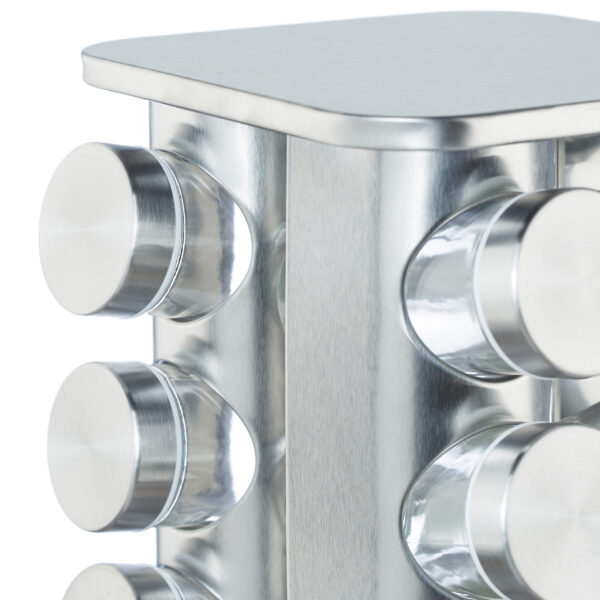 Prieskonių stovas su 16 skaidrių stiklinių – Sidabrinės spalvos elegancija jūsų virtuvėje