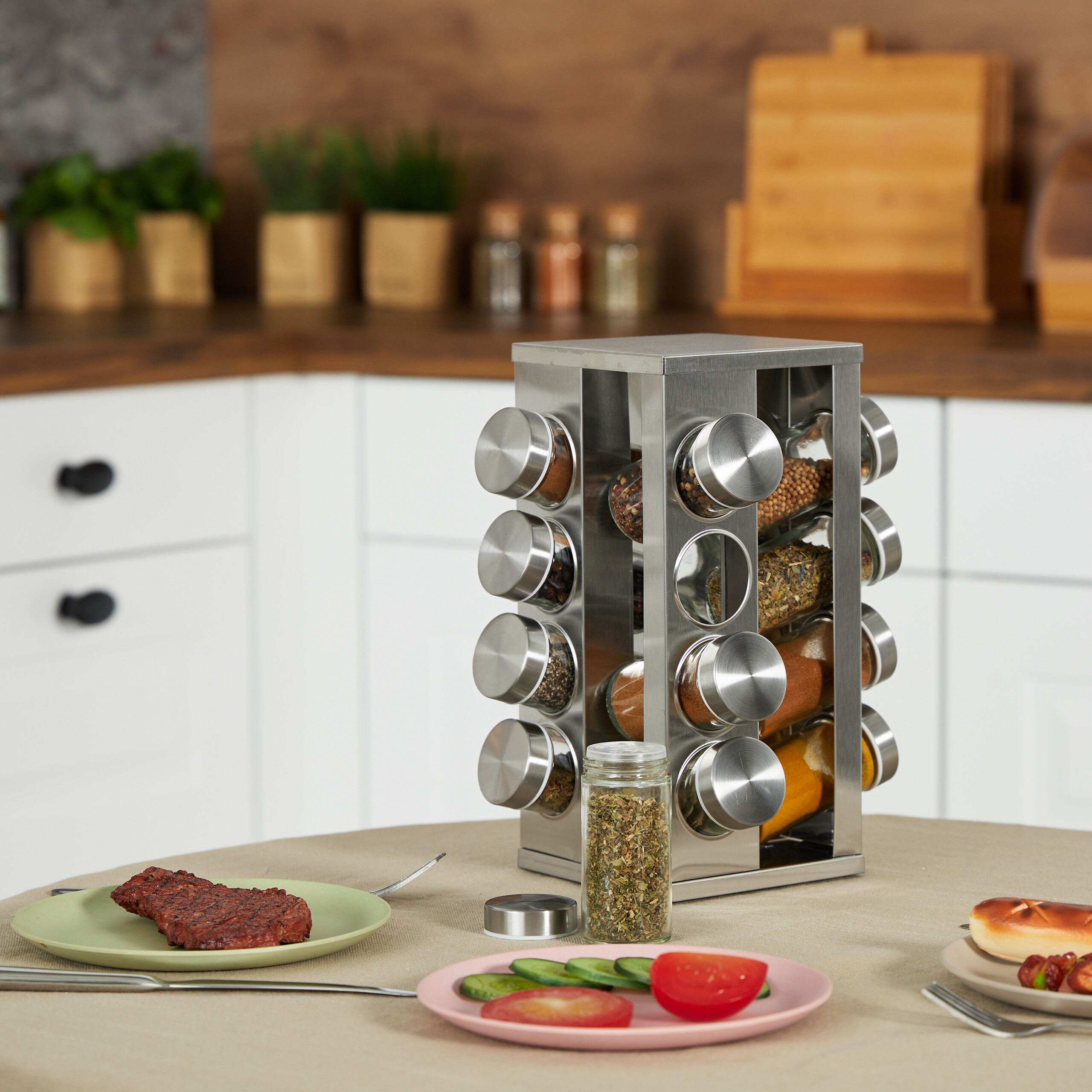 - Sukamasis Mechanizmas: 360° besisukantis stovas užtikrina, kad visi prieskoniai būtų lengvai pasiekiami tiek gaminant maistą, tiek prie valgomojo stalo.