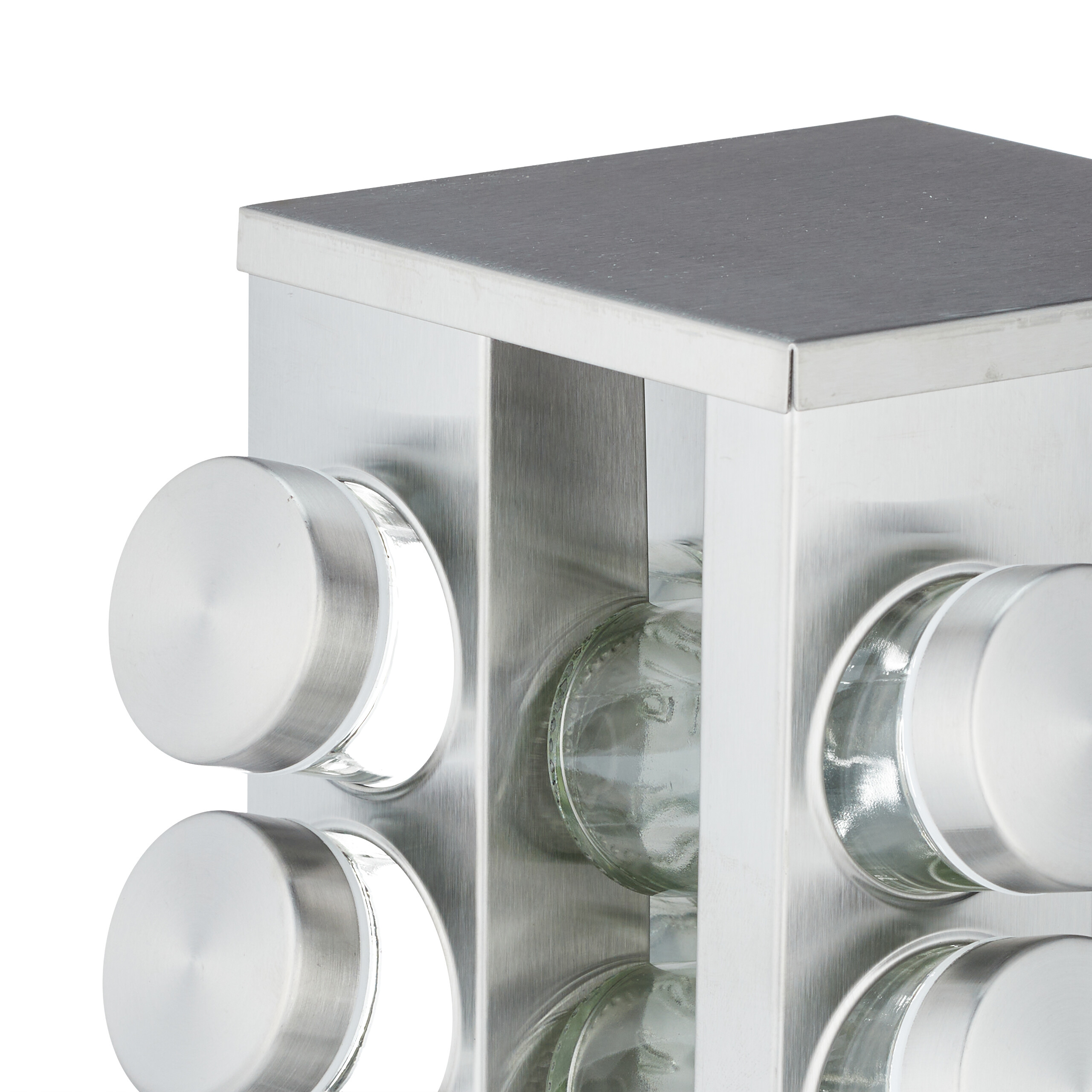 Įneškite tvarką ir eleganciją į savo virtuvę su šiuo moderniu prieskonių stovu. Pagamintas iš aukštos kokybės nerūdijančio plieno, šis stovas pasižymi matiniu sidabro atspalviu, kuris puikiai dera prie bet kokio virtuvės interjero. Daugiau jokio chaoso virtuvės spintelėje – viskas bus savo vietoje ir lengvai pasiekiama.