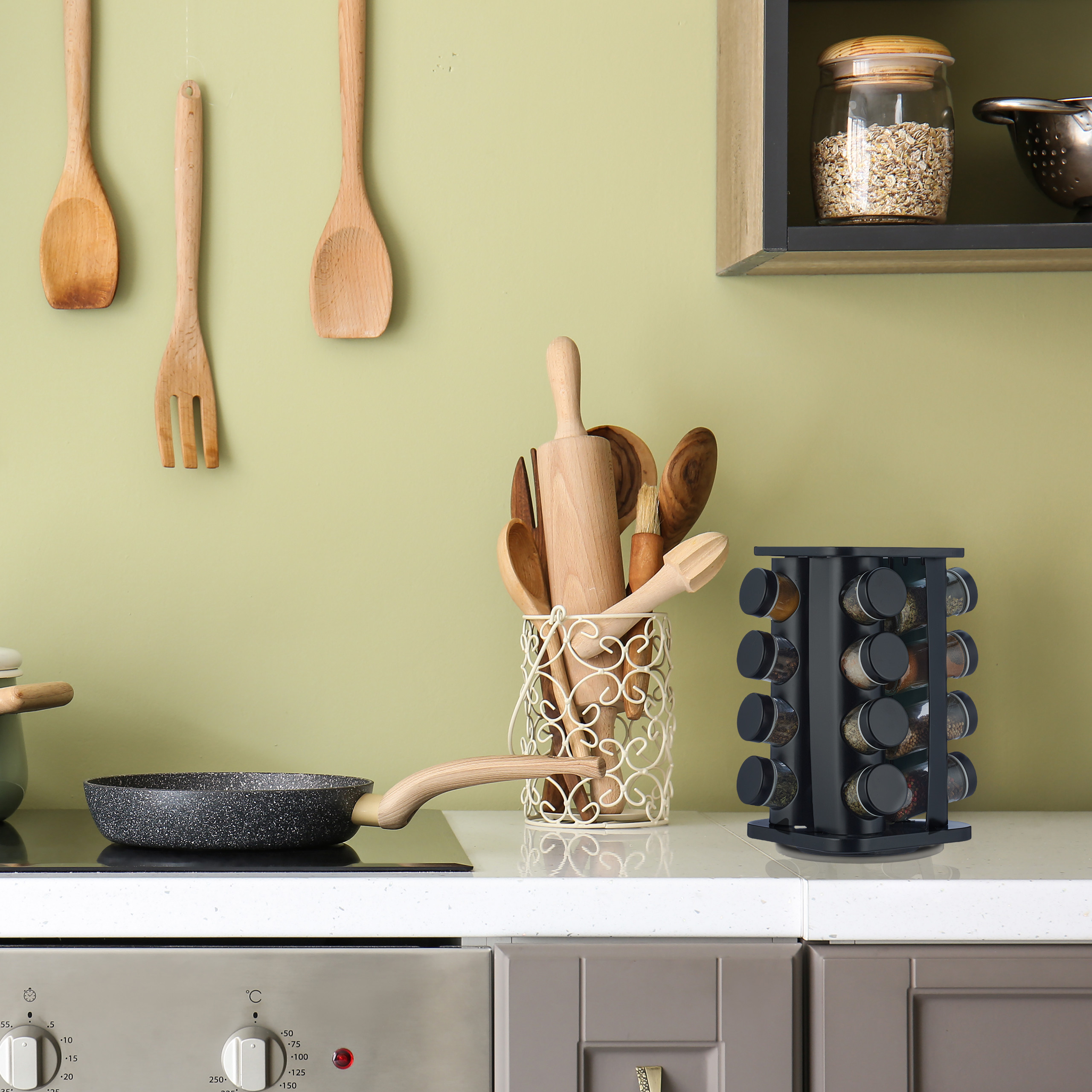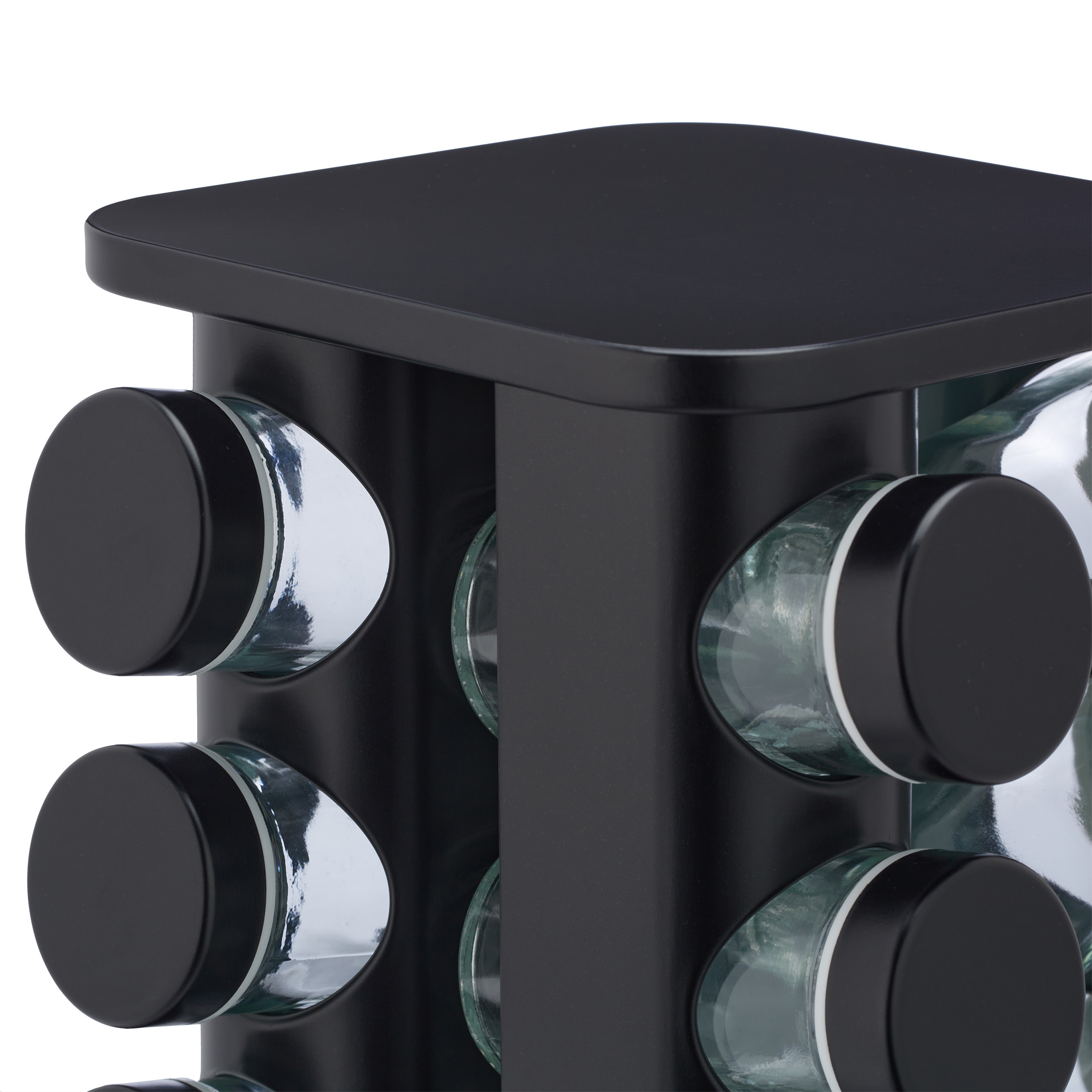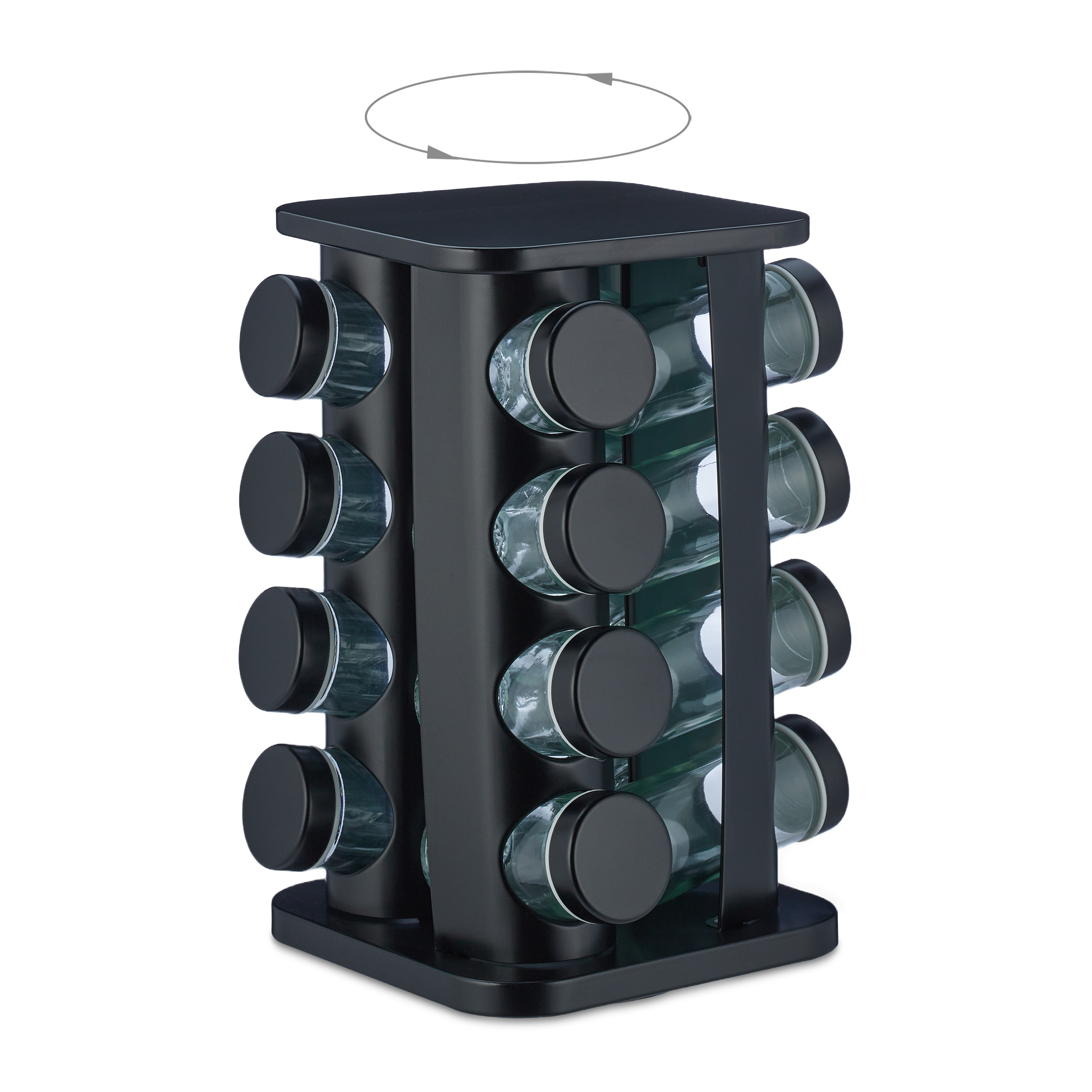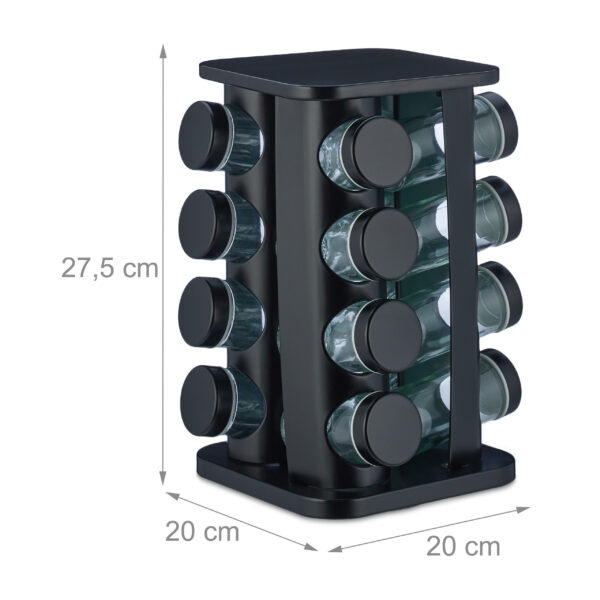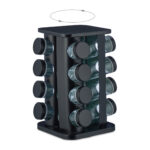 Prieskonių stovas su 16 skaidrių stiklinių – Juodos spalvos elegancija jūsų virtuvei