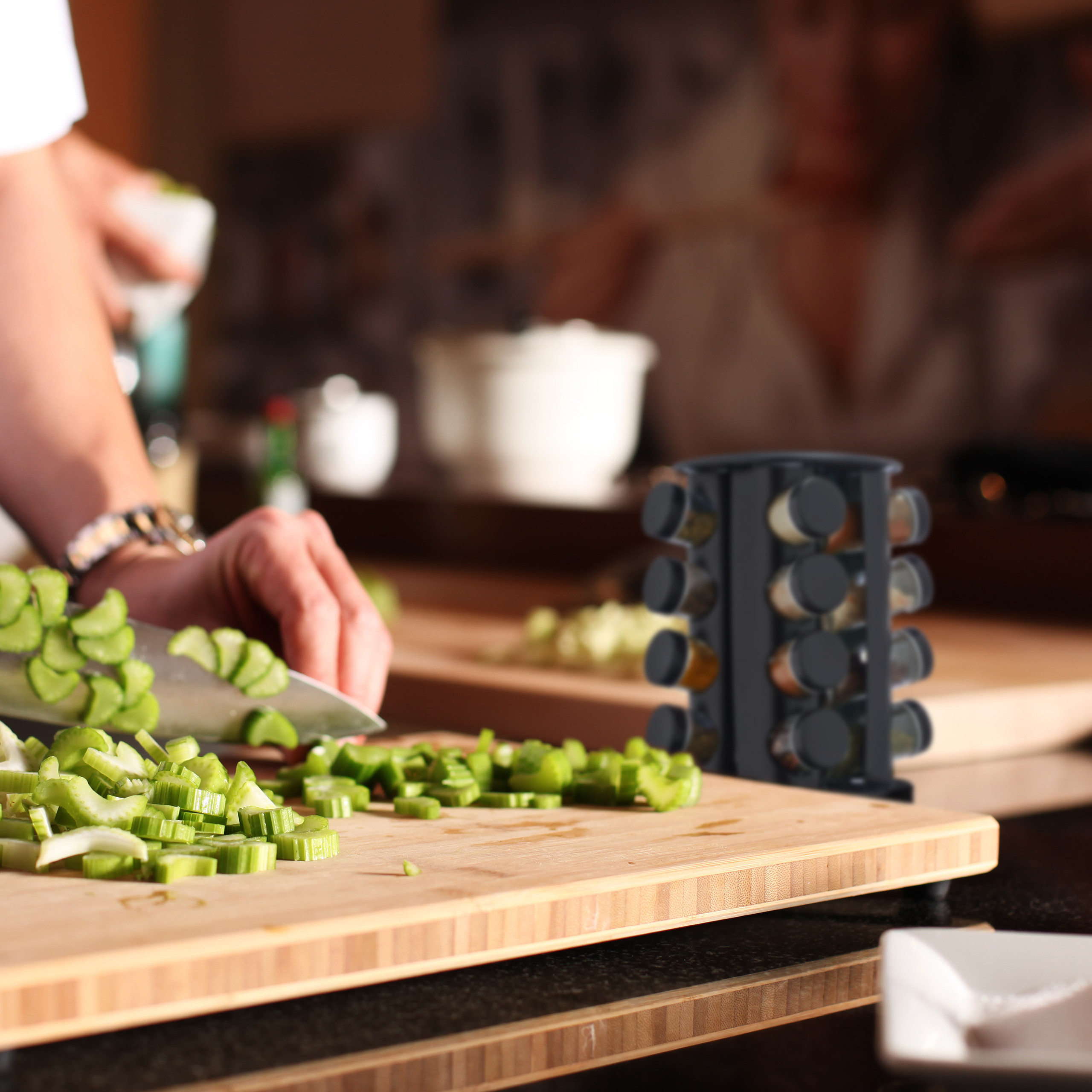 - Patogumas: Sukimosi mechanizmas ir atvira konstrukcija užtikrina lengvą prieigą prie prieskonių gaminant maistą ar prie stalo.