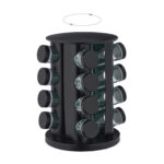 Šis prieskonių stovas yra ne tik praktiškas, bet ir stilingas sprendimas jūsų virtuvei. Jo juodos ir baltos spalvos derinys suteikia modernumo ir elegancijos, o skaidrūs stikliniai indeliai leidžia lengvai matyti prieskonių turinį. Pasirinkite šį prieskonių stovą ir mėgaukitės tvarka bei estetika savo virtuvėje!