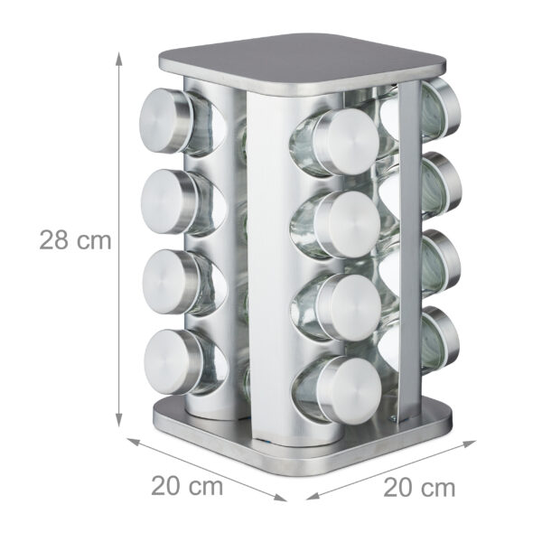 Prieskonių stovas su 16 skaidrių stiklinių 28x20x20cm., sidabrinės spalvos