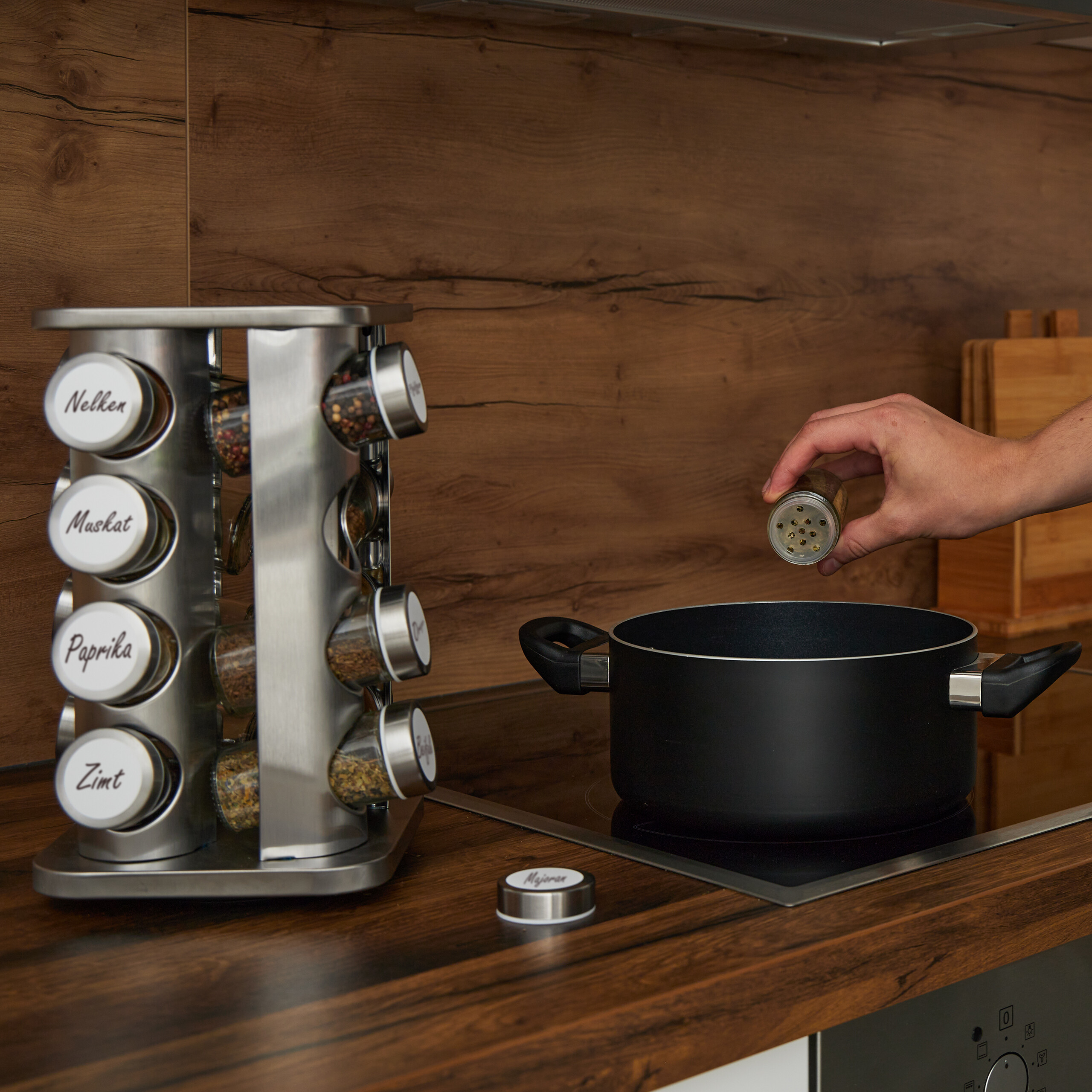 Šis prieskonių stovas ne tik padės jums palaikyti tvarką, bet ir taps stilingu akcentu jūsų virtuvėje. Puikiai tinka tiek kasdieniam naudojimui, tiek ypatingoms progoms, kai norite nustebinti svečius savo kulinariniais gebėjimais.